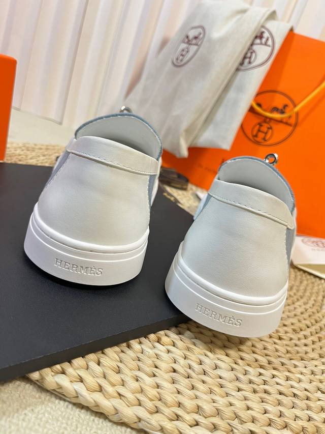 Factory Price: Women's sports shoes, original single-piece, men's +10. Hermes Kelly buckle casual loafers, slip-on shoes are now available! The highest quality version on the market! Top-tier quality! Aristocratic elegance! Hermes rarely releases flat casual shoes, especially those with the classic palladium-plated Kelly buckle! Creates a stylish urban look, perfectly embodying Hermes' noble and elegant style! Seemingly simple yet full of details, these ordinary sneakers become instantly stunning with the Kelly buckle! Simple, super versatile, and very comfortable. Materials: Imported cowhide upper, imported sheepskin lining and insole, original mold-made outsole. Sizes: Women's: 35-40, 41 (made to order); Men's: 40-44, 45, 46 (made to order).