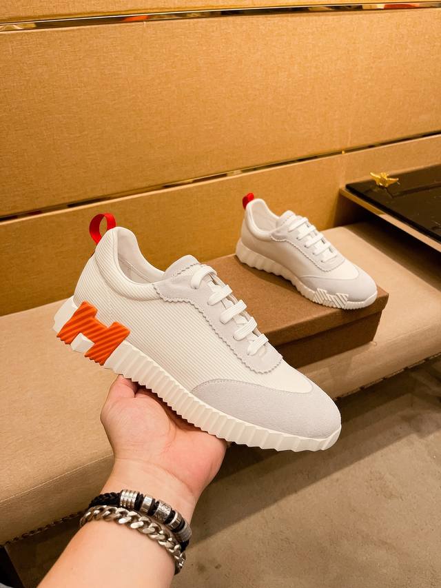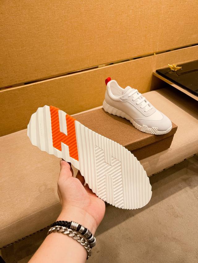 Her Hermes Bouncing low-top casual shoes with old-money style and leather upper.