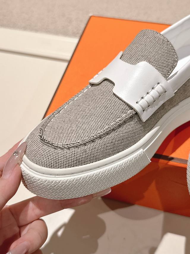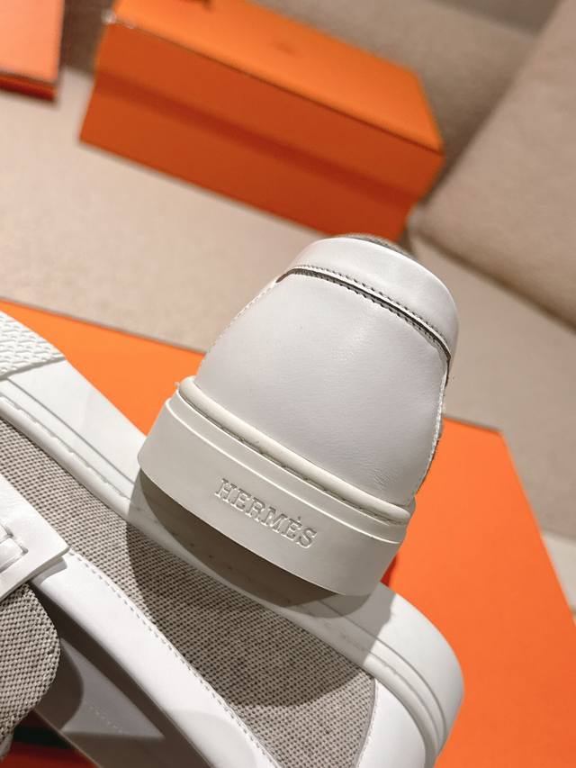 These calfskin and washed denim no-lace sneakers feature the iconic "H" detail. The simple and streamlined design creates a stylish urban look. Comfortable and versatile, a classic Hermes timeless style. Comes with exquisite boutique packaging