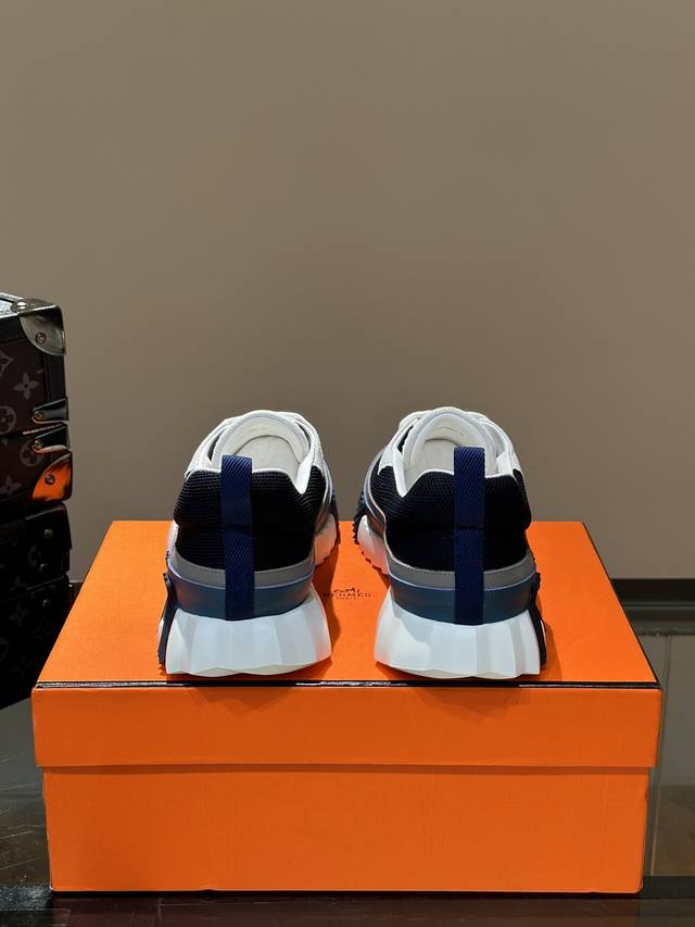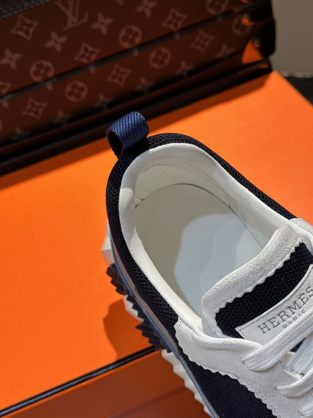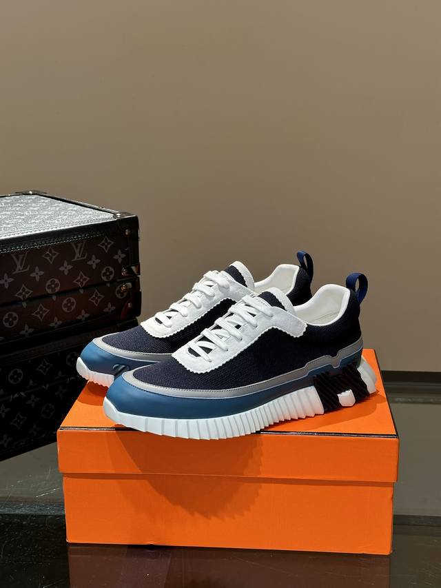H Hermes Bouuncing sneakers, men's casual sneakers, featuring a cowhide upper combined with high-end mesh fabric, imported materials for a premium feel, and a lightweight sole adorned with contrasting patterns for a versatile and stylish look. Sizes: 38-44