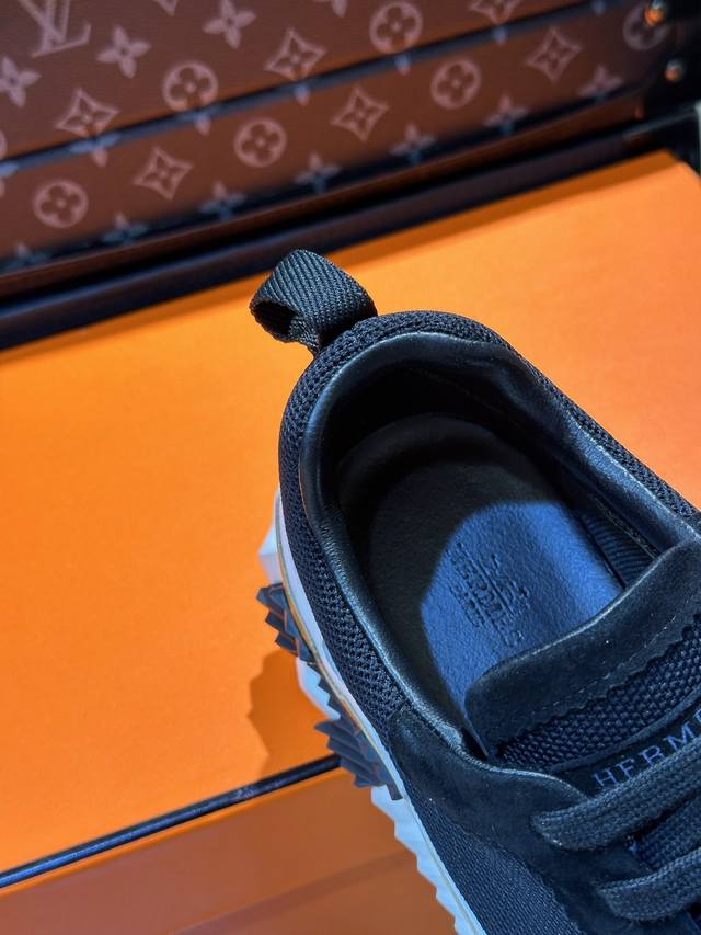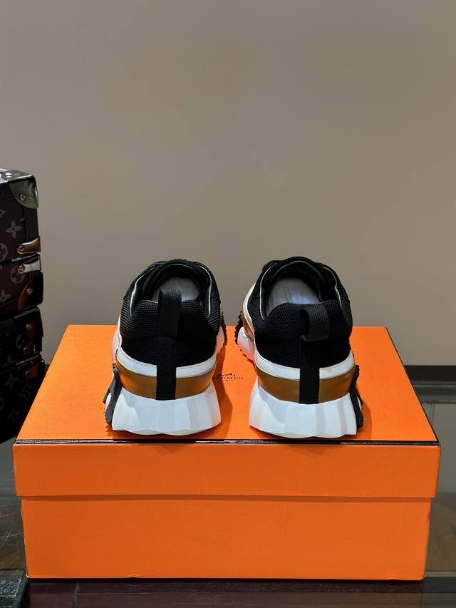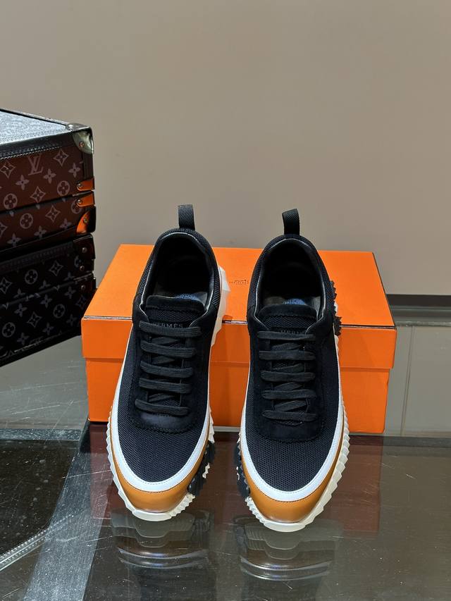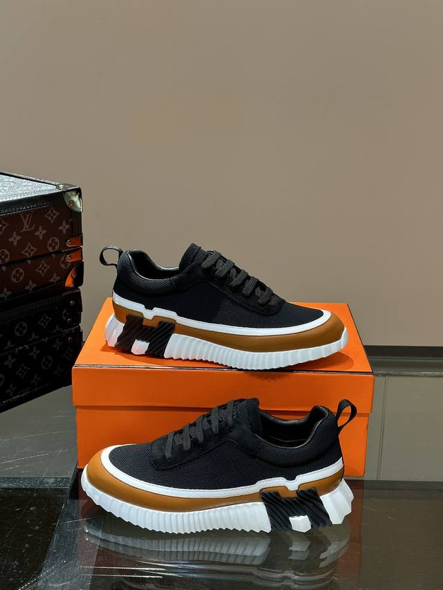 H Hermes Bouuncing sneakers, men's casual sneakers, featuring a cowhide upper combined with high-end mesh fabric, imported materials, and a lightweight sole adorned with contrasting patterns for a versatile and stylish look. Sizes: 38-44, 45-46 (custom orders available).