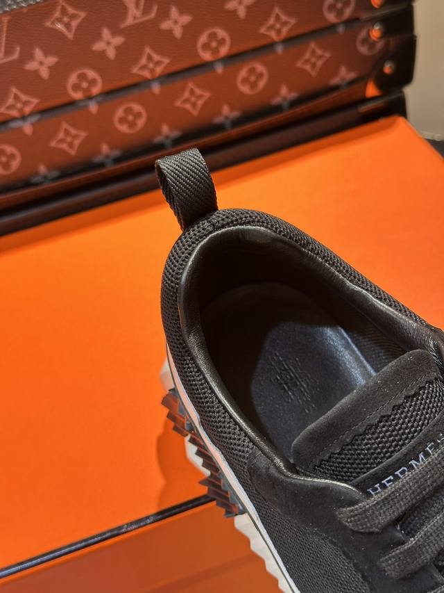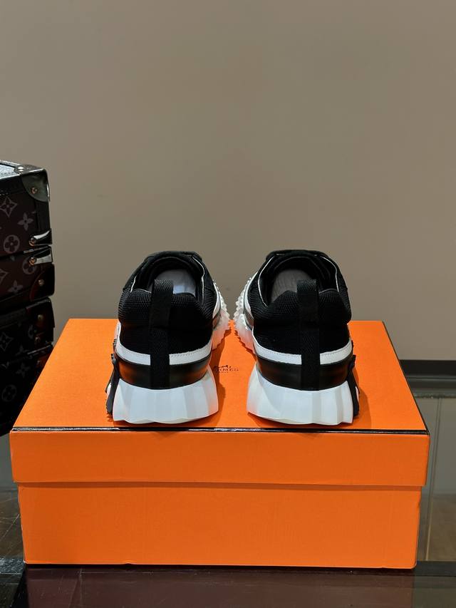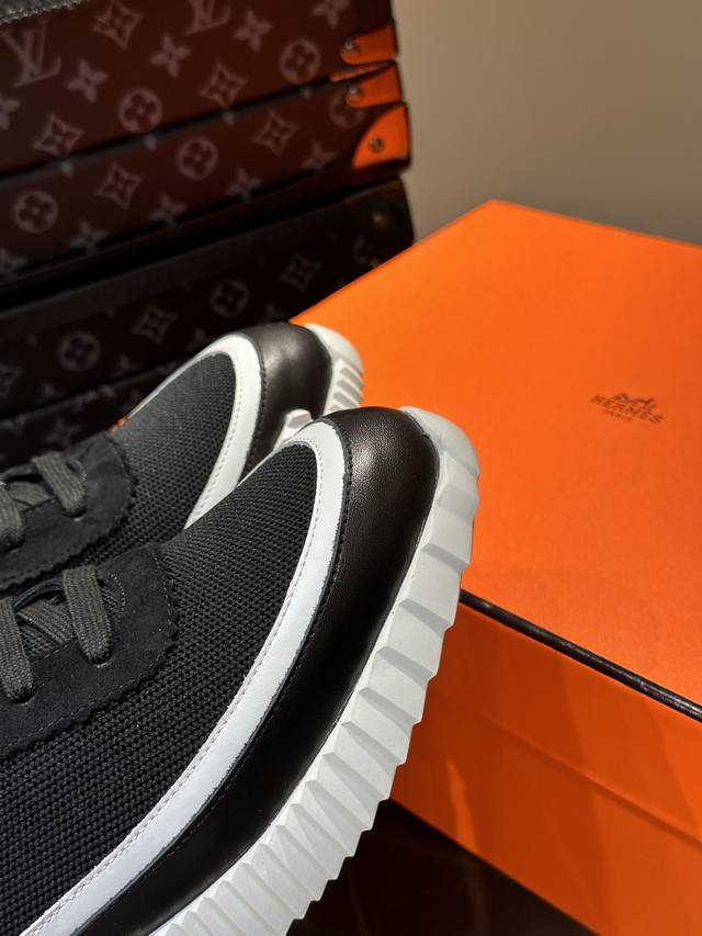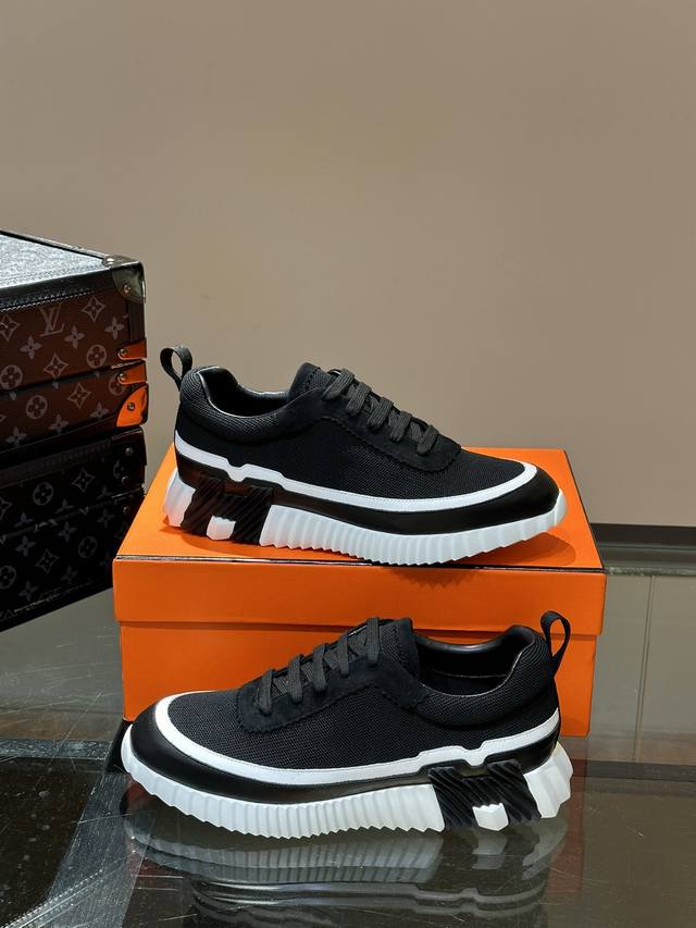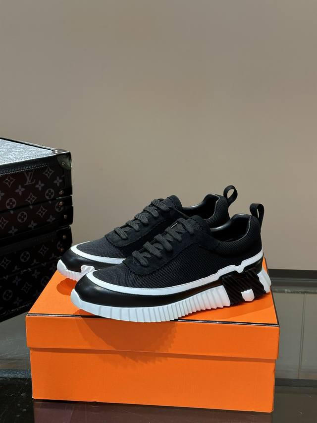 H Hermes Bouuncing sneakers, men's casual sneakers, featuring a cowhide upper combined with high-end mesh fabric, imported materials for a premium feel, and a lightweight sole adorned with contrasting patterns for a versatile and stylish look. Sizes: 38-44