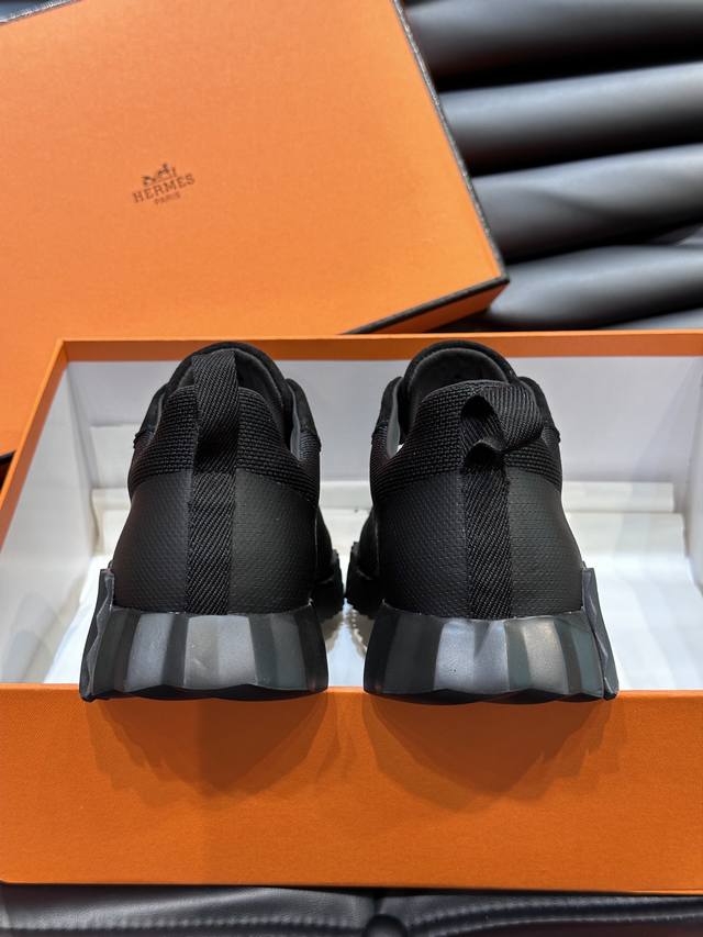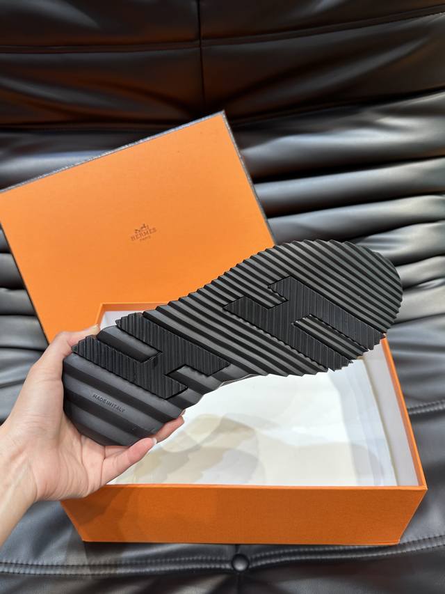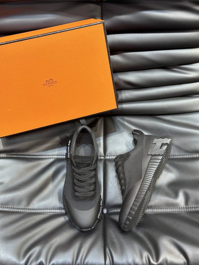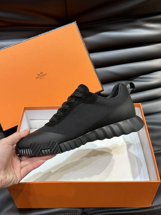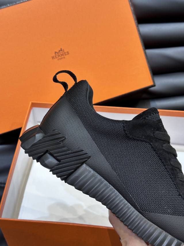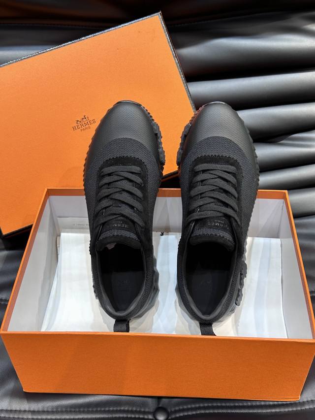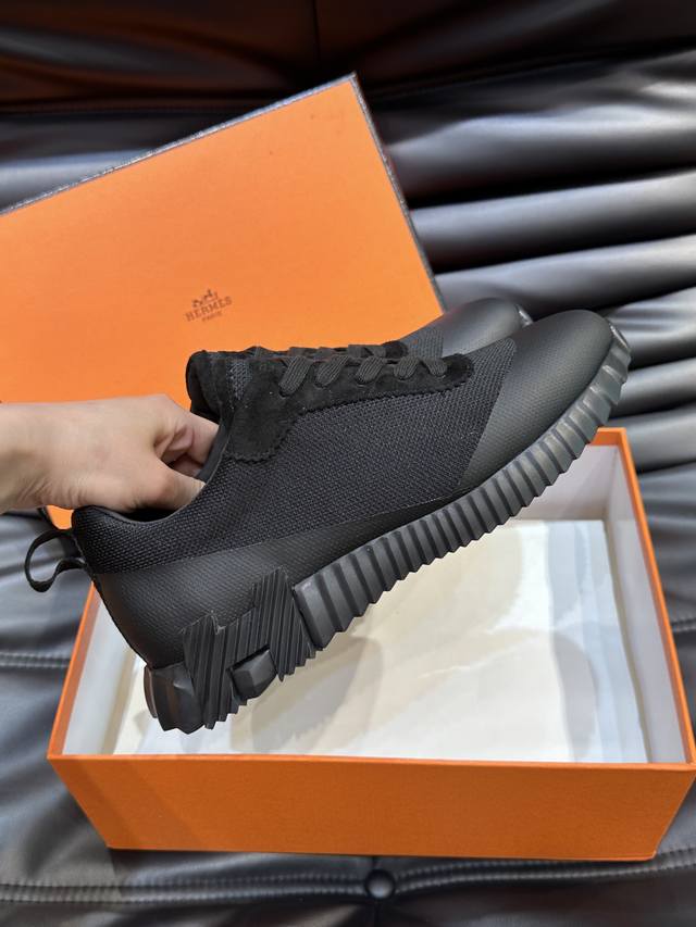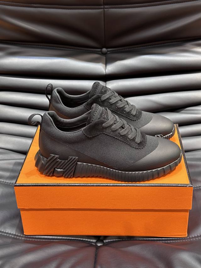 H Hermes Bouuncing sneakers, men's casual sneakers, featuring a cowhide upper combined with high-end mesh fabric, imported materials for a premium feel, and a lightweight sole adorned with contrasting patterns for a versatile and stylish look. Sizes: 38-44