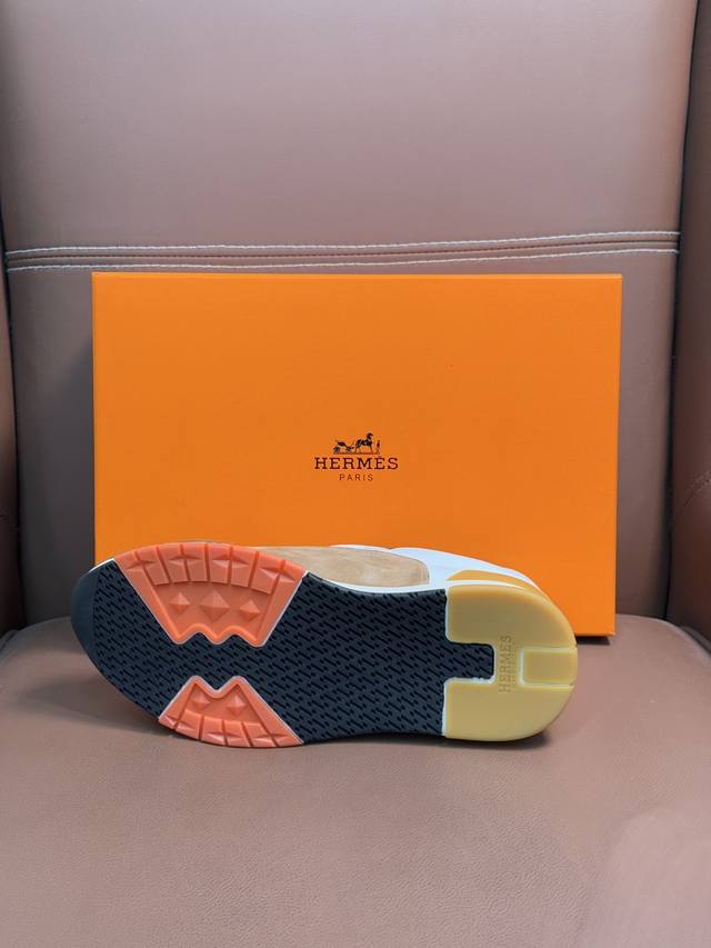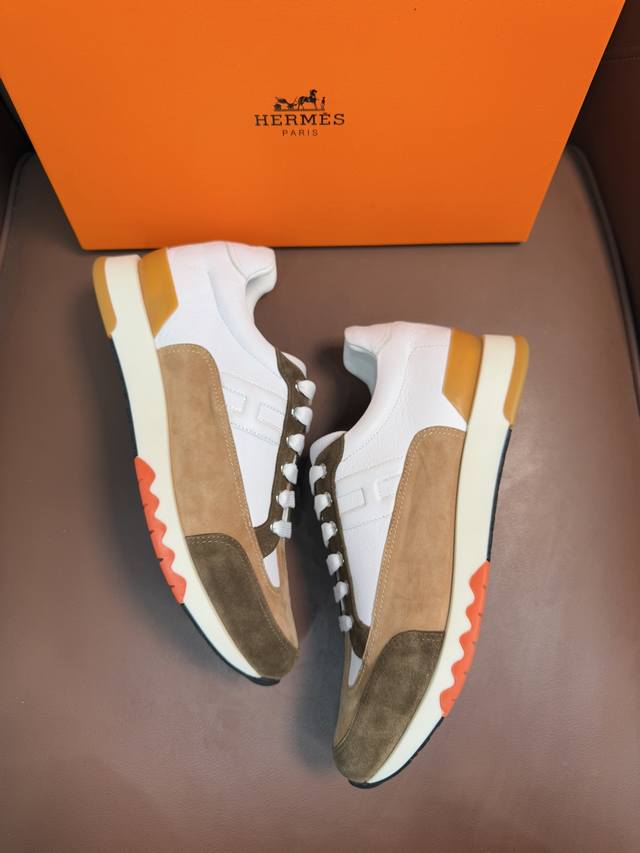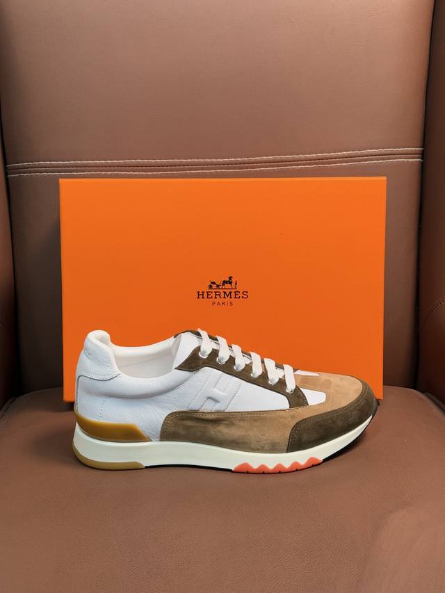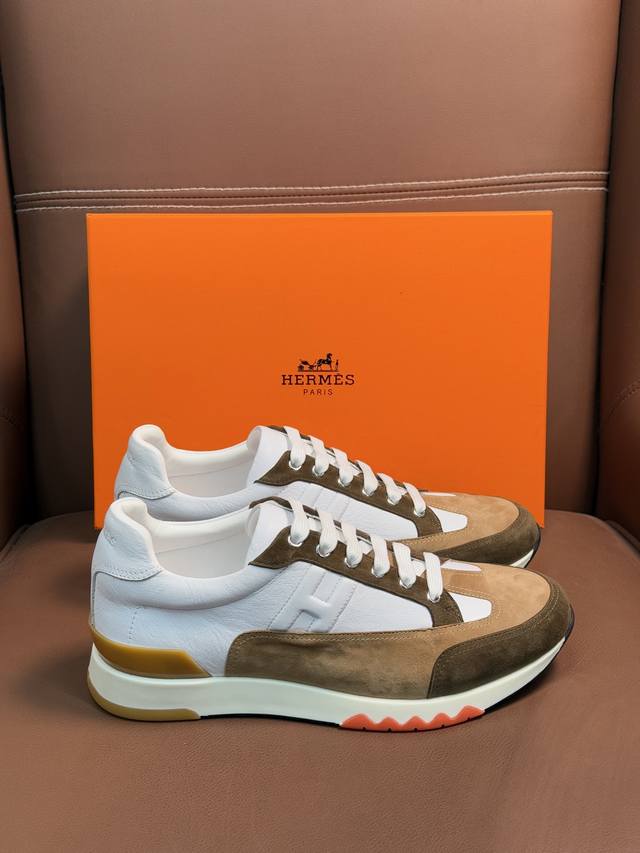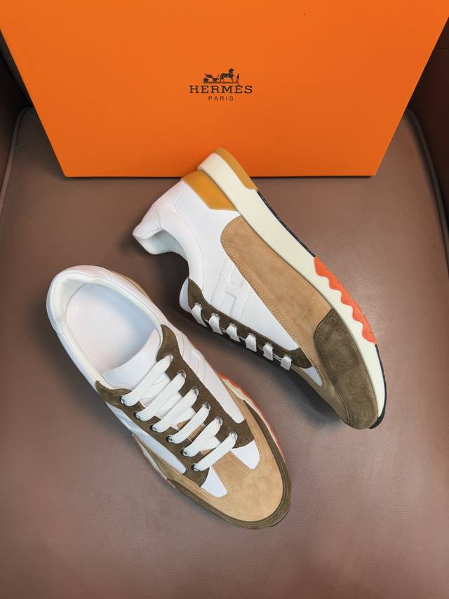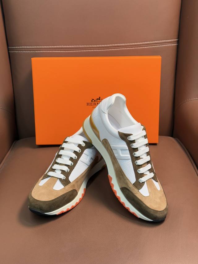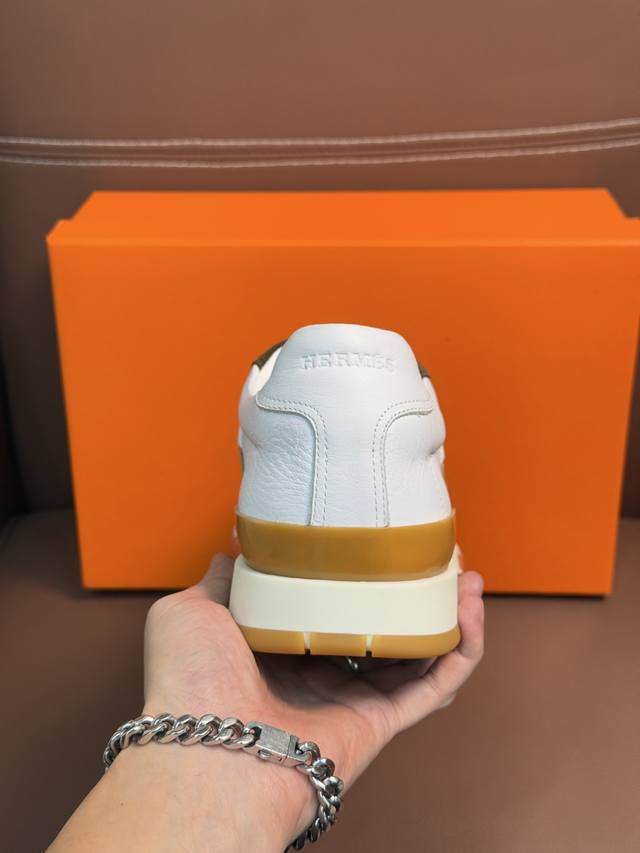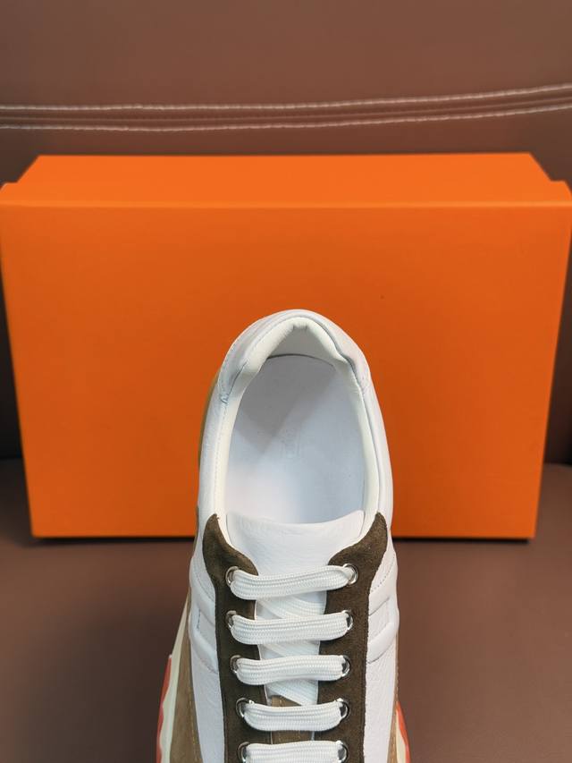 H Hermes high-end luxury brand, men's low-top platform casual sneakers, crafted from cowhide leather, premium quality, creating a modern urban style! Imported calfskin lining, soft and comfortable, TPU outsole lightweight and comfortable, premium quality! Price: Ddd. Sizes: 39-44, 38, 45, 46, 47 (custom made).