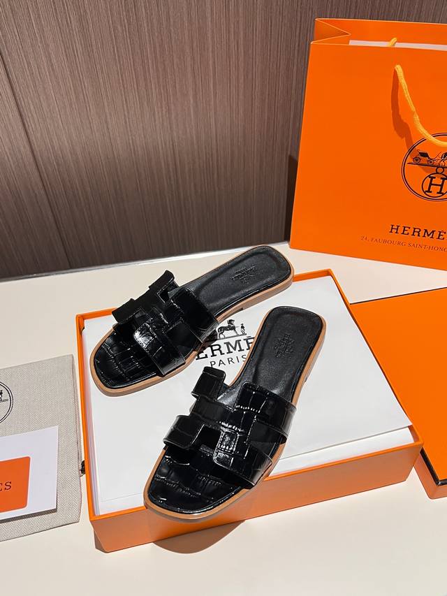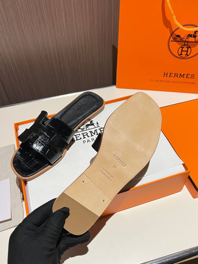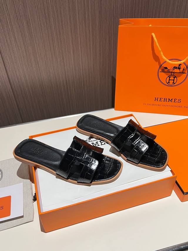 Hermes 2025 Spring/Summer New Color Classic Oran Color Block Racer Women's Slippers, Chunky Heel, Round Toe, Open Toe, Jelly Color Sandals DDD Material: Imported ostrich leather upper + water-dyed leather lining + Italian genuine leather outsole DDD Size: 34-43 34, 40, 41, 42, 43 Custom sizes are non-refundable DDD