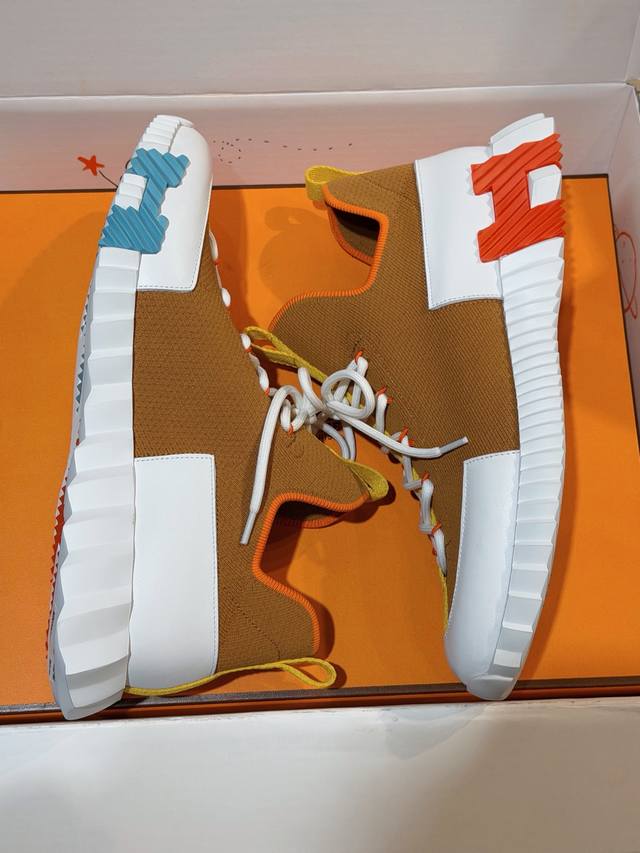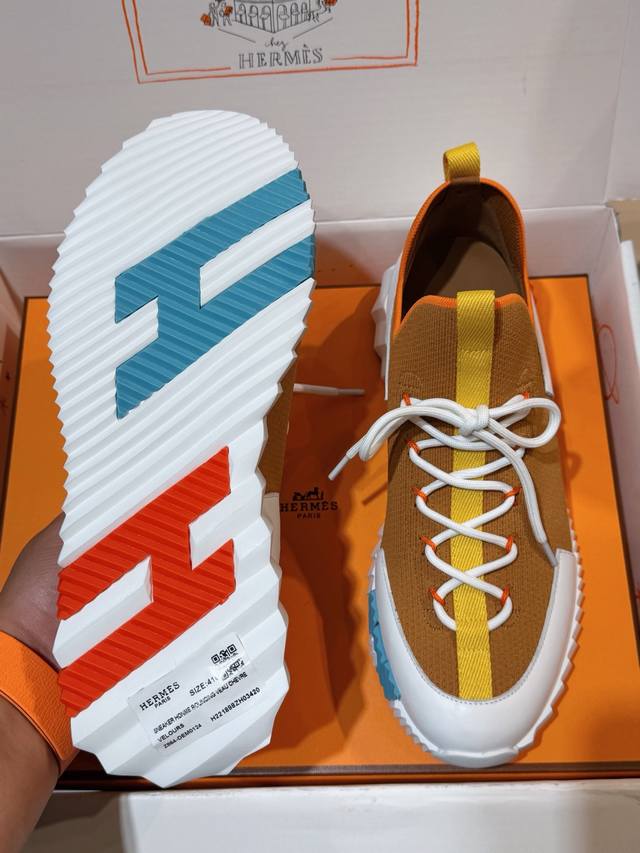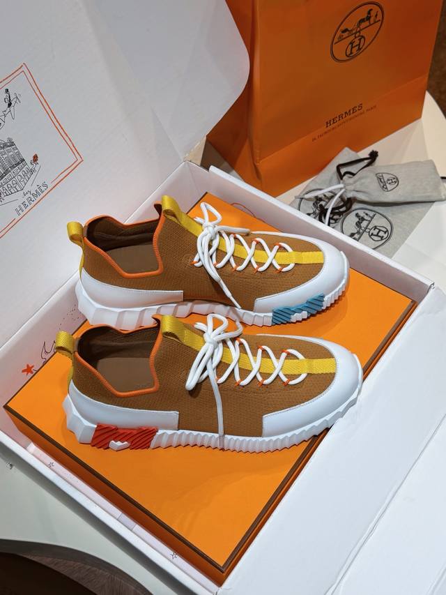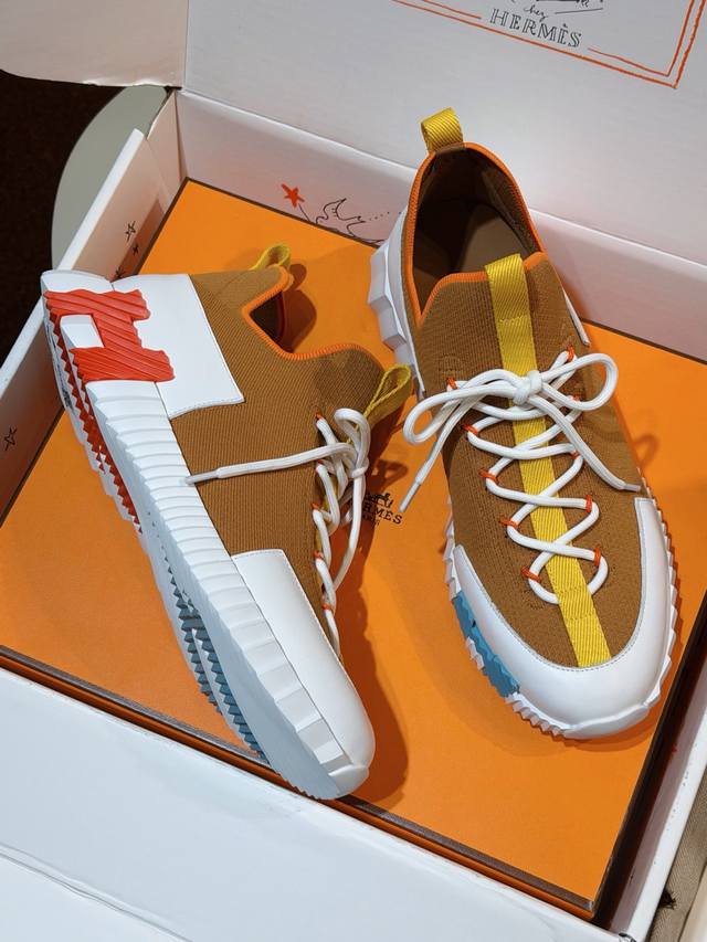 Hermes Bouning Couple Casual Flyknit Shoes - Cowhide Midsole. Original purchase, 1:1 replica. This is your exclusive top-quality pair. Features flyknit and calfskin craftsmanship. Lightweight sole with contrasting patterns for a versatile and stylish look. Includes a second pair of laces. White original ultra-lightweight foam sole. Black rubber inlays at the front, hurricane grey rubber inlays at the back. Hurricane grey lambskin insole and lining. Sole height: 5cm. Comes with an extra pair of laces and official genuine packaging. Comfortable, breathable, and easy to wear. Super trendy, fashionable, and versatile. Size: Men's 39-44, 38, 45, 46, 47 (Made to order). Special Note: Women's sizes 35, 36, 37, 38, 39, 40, 41 (Made to order).