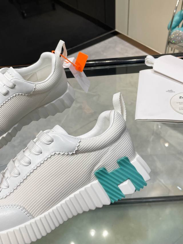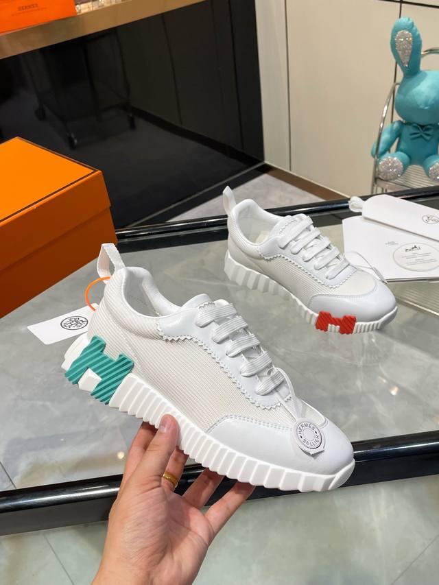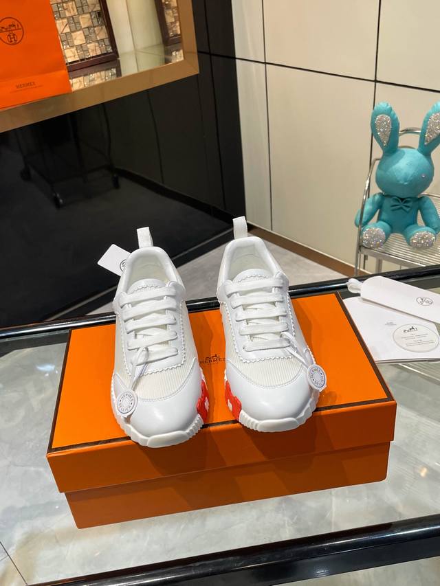 HErmes Couple Style. Women's sizes 35-39, 40, 41, 42. Custom-made men's sizes 39-44, 45, 46. Custom-made DDD 25Ss New Hermes Top-Tier Version Hermes Classic Flyknit Casual Sneakers, the highest quality version, adorned with an exaggerated "H" letter on the sole, the italic design and vibrant colors showcase vitality, continuing the brand's design inspiration! DDD A very beautiful casual shoe, stylish yet cute! Classic style, uniquely charming height-increasing shoes! DDD Original material 1:1, original breathable imported sheepskin lining, imported sheepskin insole, custom-molded outsole: TU+p U vacuum one-piece molding, original last process, original packaging box with shoe storage bag, tote bag, shoe box with blue light anti-counterfeiting label! DDD