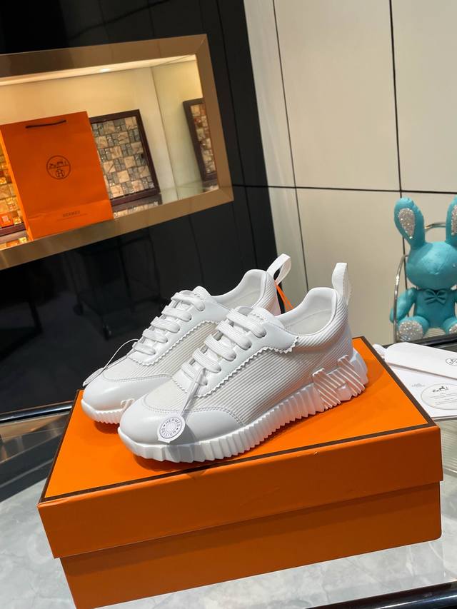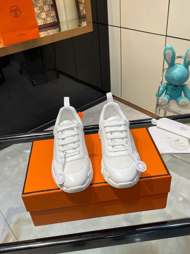 Hermes Couple Style. Women's sizes 35-39, 40, 41, 42. Custom-made men's sizes 39-44, 45, 46. Custom-made DDD 25Ss New Hermes Top-Tier Version Hermes Classic Flyknit Casual Sneakers, the highest quality version, adorned with an exaggerated "H" letter on the sole, the italic design and vibrant colors showcase vitality, continuing the brand's design inspiration! DDD A very beautiful casual shoe, stylish yet cute! Classic style, uniquely charming height-increasing shoes! DDD Original material 1:1, original breathable imported sheepskin lining, imported sheepskin insole, custom-molded outsole: TU+p U vacuum one-piece molding, original last process, original packaging box with shoe storage bag, tote bag, shoe box with blue light anti-counterfeiting label! DDD
