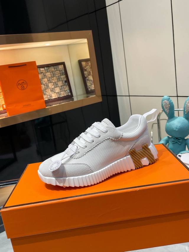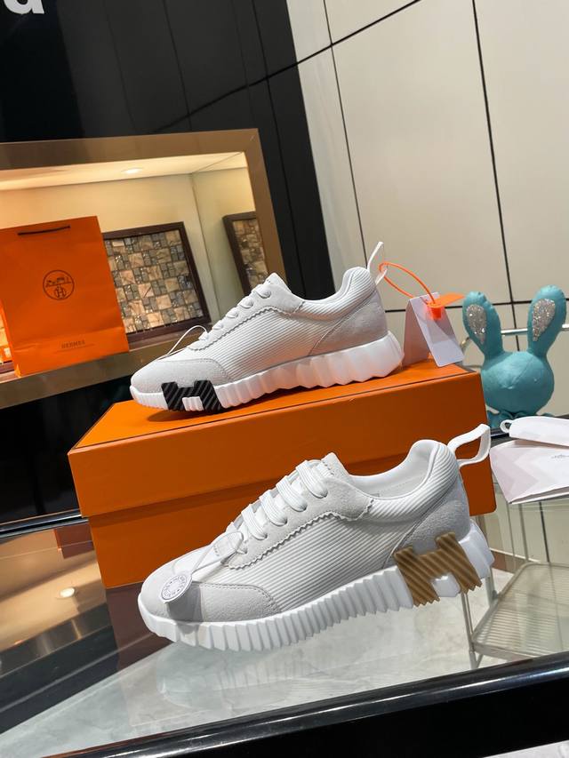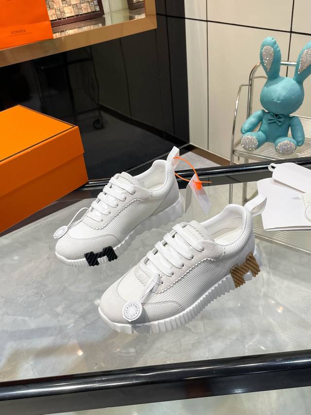 Hermes Couple Style. Women's sizes 35-39, 40, 41, 42. Custom-made men's sizes 39-44, 45, 46. Custom-made DDD 25Ss New Hermes Top-Tier Version Hermes Classic Flyknit Casual Sneakers, the highest quality version, adorned with an exaggerated "H" letter on the sole, the italic design and vibrant colors showcase vitality, continuing the brand's design inspiration! DDD A very beautiful casual shoe, stylish yet cute! Classic style, uniquely charming height-increasing shoes! DDD Original material 1:1, original breathable imported sheepskin lining, imported sheepskin insole, custom-molded outsole: TU+p U vacuum one-piece molding, original last process, original packaging box with shoe storage bag, tote bag, shoe box with blue light anti-counterfeiting label! DDD