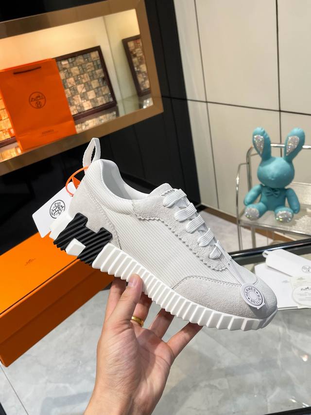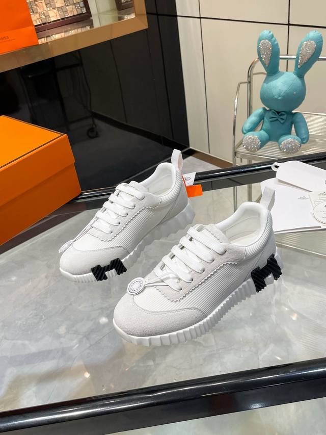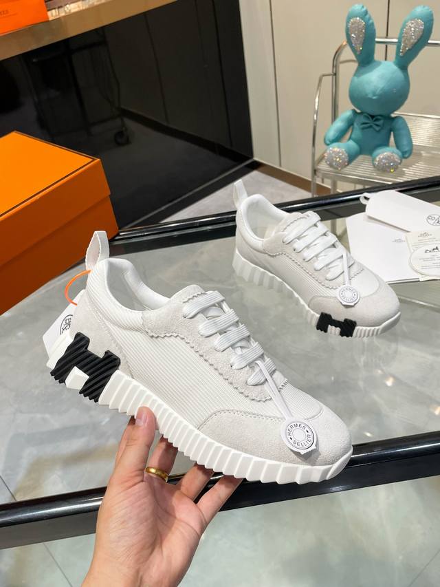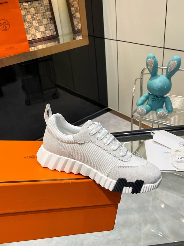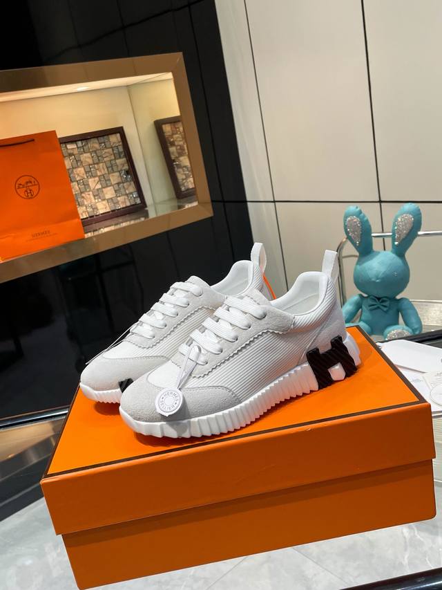 Hermes Couple Style. Women's sizes 35-39, 40, 41, 42. Custom-made men's sizes 39-44, 45, 46. Custom-made DDD 25Ss New Hermes Top-Tier Version Hermes Classic Flyknit Casual Sneakers, the highest quality version, adorned with an exaggerated "H" letter on the sole, the italic design and vibrant colors showcase vitality, continuing the brand's design inspiration! DDD A very beautiful casual shoe, stylish yet cute! Classic style, uniquely charming height-increasing shoes! DDD Original material 1:1, original breathable imported sheepskin lining, imported sheepskin insole, custom-molded outsole: TU+p U vacuum one-piece molding, original last process, original packaging box with shoe storage bag, tote bag, shoe box with blue light anti-counterfeiting label! DDD