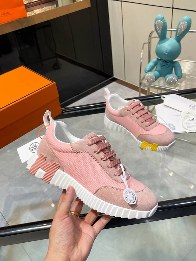 Hermes Couple Style. Women's sizes 35-39, 40, 41, 42. Custom-made men's sizes 39-44, 45, 46. Custom-made DDD 25Ss New Hermes Top-Tier Version Hermes Classic Flyknit Casual Sneakers, the highest quality version, adorned with an exaggerated "H" letter on the sole, the italic design and vibrant colors showcase vitality, continuing the brand's design inspiration! DDD A very beautiful casual shoe, stylish yet cute! Classic style, uniquely charming height-increasing shoes! DDD Original material 1:1, original breathable imported sheepskin lining, imported sheepskin insole, custom-molded outsole: TU+p U vacuum one-piece molding, original last process, original packaging box with shoe storage bag, tote bag, shoe box with blue light anti-counterfeiting label! DDD