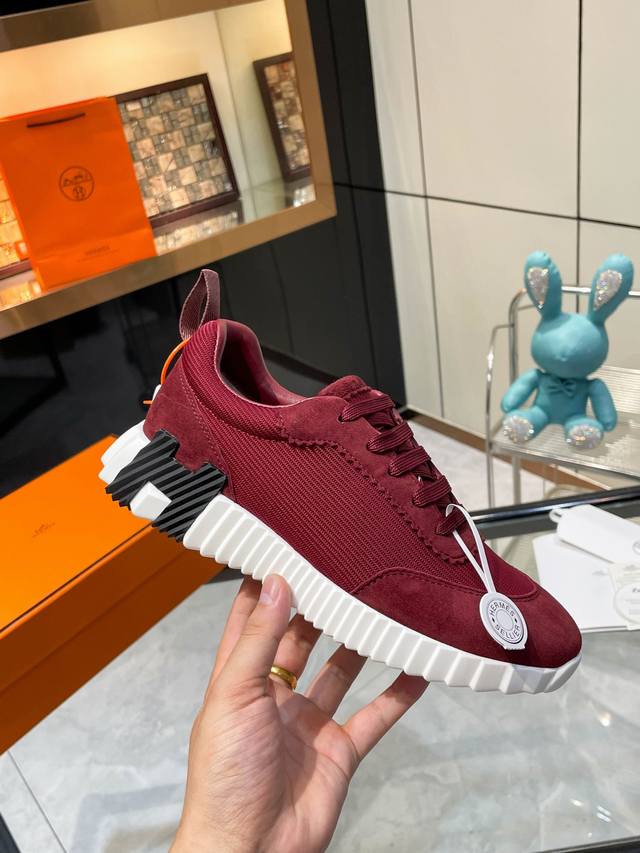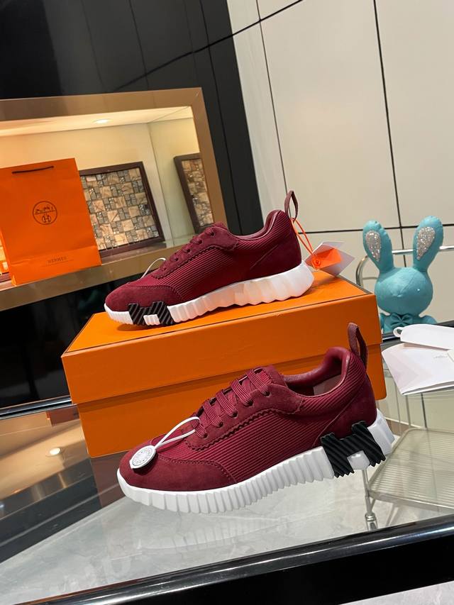 Hermes Couple Style. Women's sizes 35-39, 40, 41, 42. Custom-made men's sizes 39-44, 45, 46. Custom-made DDD 25Ss New Hermes Top-Tier Version Hermes Classic Flyknit Casual Sneakers, the highest quality version, adorned with an exaggerated "H" letter on the sole, the italic design and vibrant colors showcase vitality, continuing the brand's design inspiration! DDD A very beautiful casual shoe, stylish yet cute! Classic style, uniquely charming height-increasing shoes! DDD Original material 1:1, original breathable imported sheepskin lining, imported sheepskin insole, custom-molded outsole: TU+p U vacuum one-piece molding, original last process, original packaging box with shoe storage bag, tote bag, shoe box with blue light anti-counterfeiting label! DDD