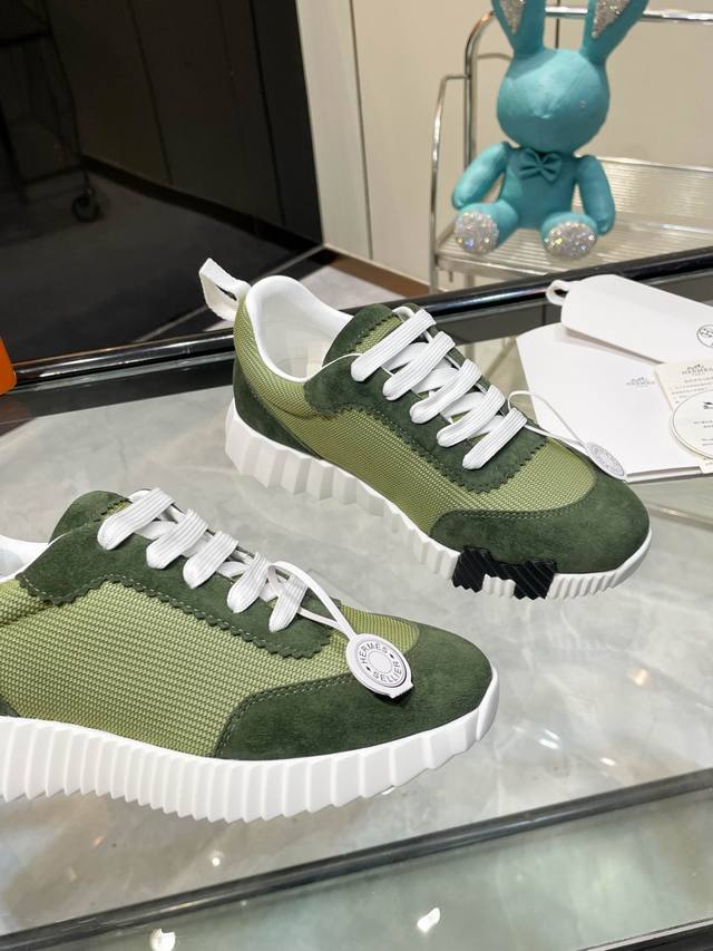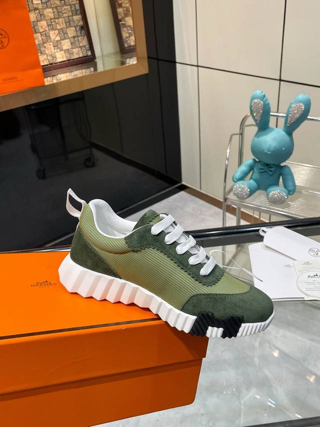 Hermes Couple Style. Women's sizes 35-39, 40, 41, 42. Custom-made men's sizes 39-44, 45, 46. Custom-made DDD 25Ss New Hermes Top-Tier Version Hermes Classic Flyknit Casual Sneakers, the highest quality version, adorned with an exaggerated "H" letter on the sole, the italic design and vibrant colors showcase vitality, continuing the brand's design inspiration! DDD A very beautiful casual shoe, stylish yet cute! Classic style, uniquely charming height-increasing shoes! DDD Original material 1:1, original breathable imported sheepskin lining, imported sheepskin insole, custom-molded outsole: TU+p U vacuum one-piece molding, original last process, original packaging box with shoe storage bag, tote bag, shoe box with blue light anti-counterfeiting label! DDD
