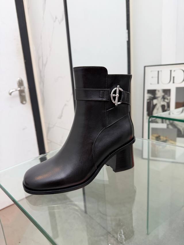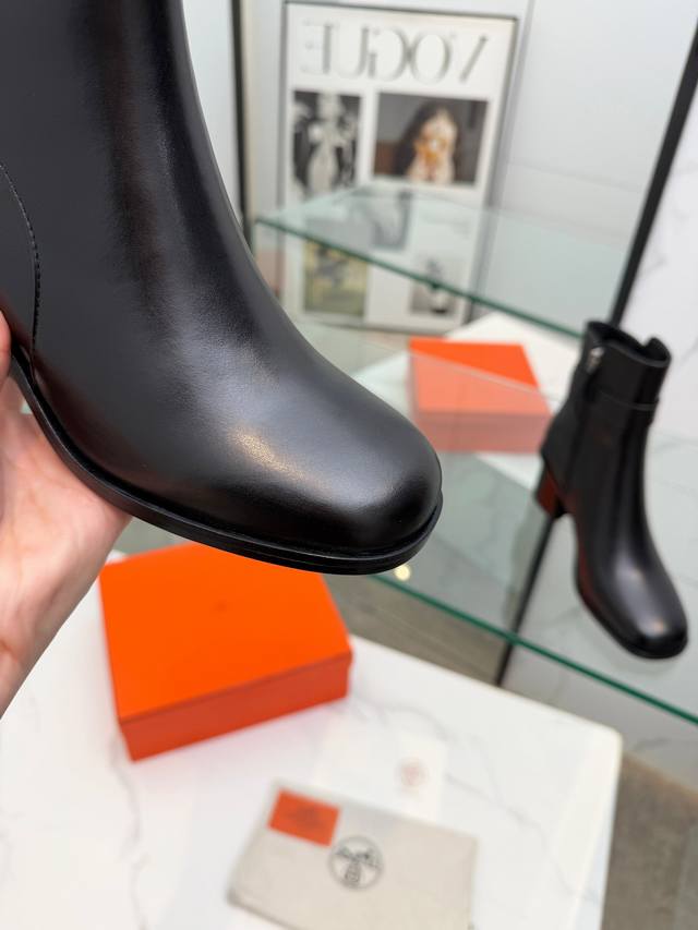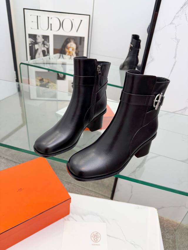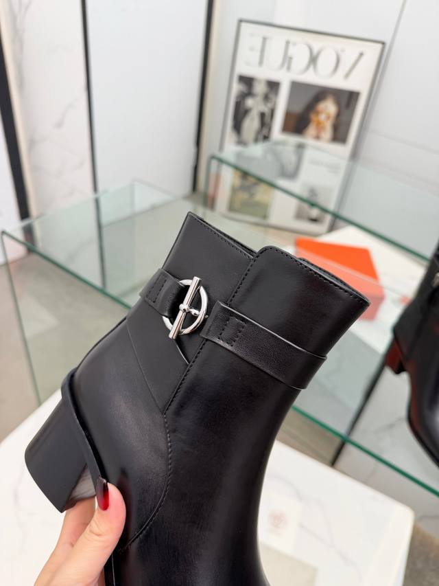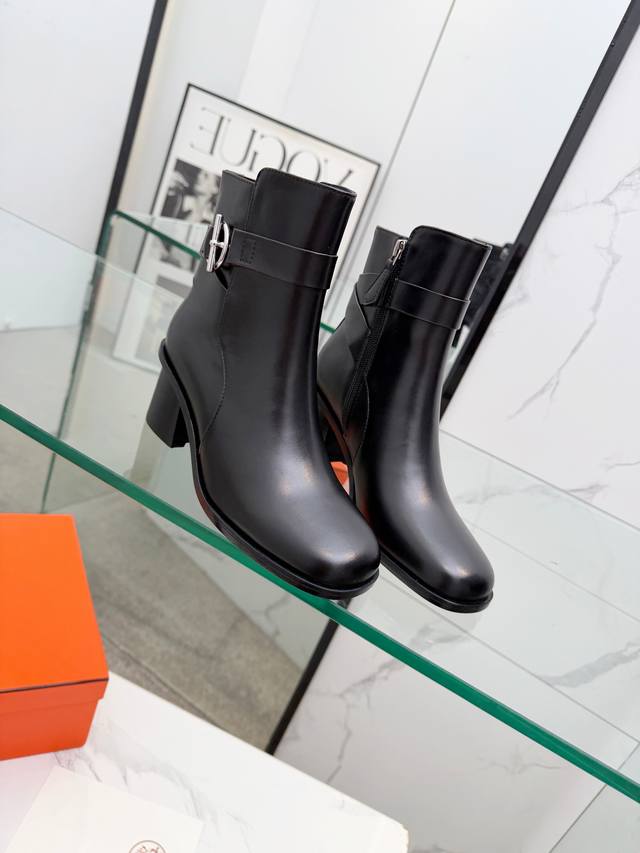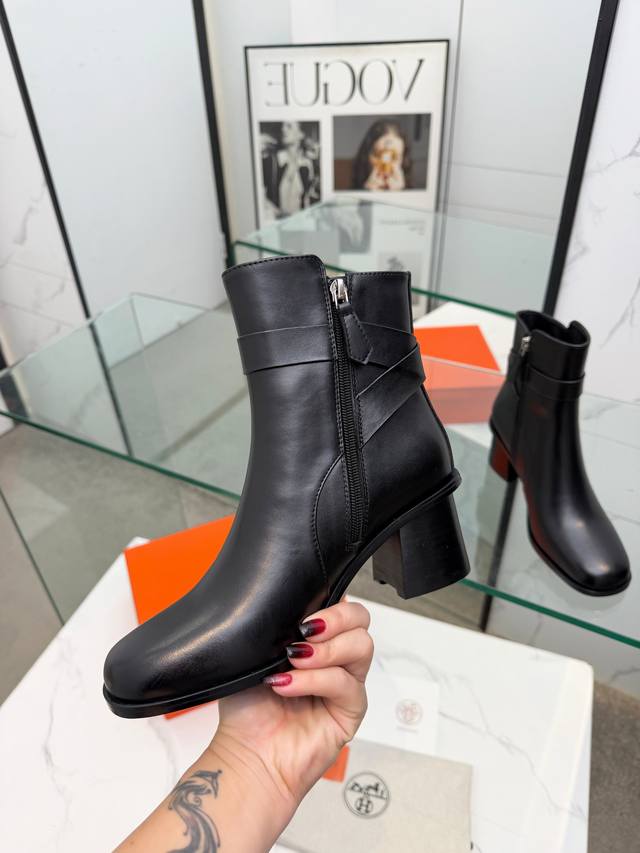 Hermes Frenchie Ankle Boots, Autumn/Winter Short Boots, stylish and versatile, super comfortable. Every detail is meticulously crafted. Original custom Nappa calfskin leather lining, sheepskin sheepskin, original private mold Kelly, pure steel hardware. Heel height: 6cm. Outsole: Original genuine leather outsole. Size: 35~41. Custom orders are non-refundable and non-exchangeable.