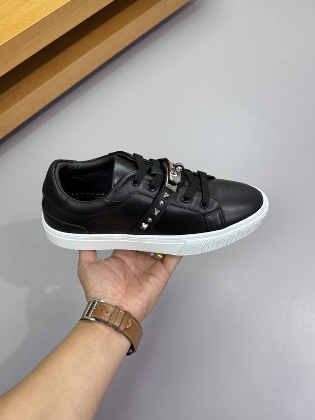 - Upper: Nappa calfskin, printed brand logo, branded metal fasteners