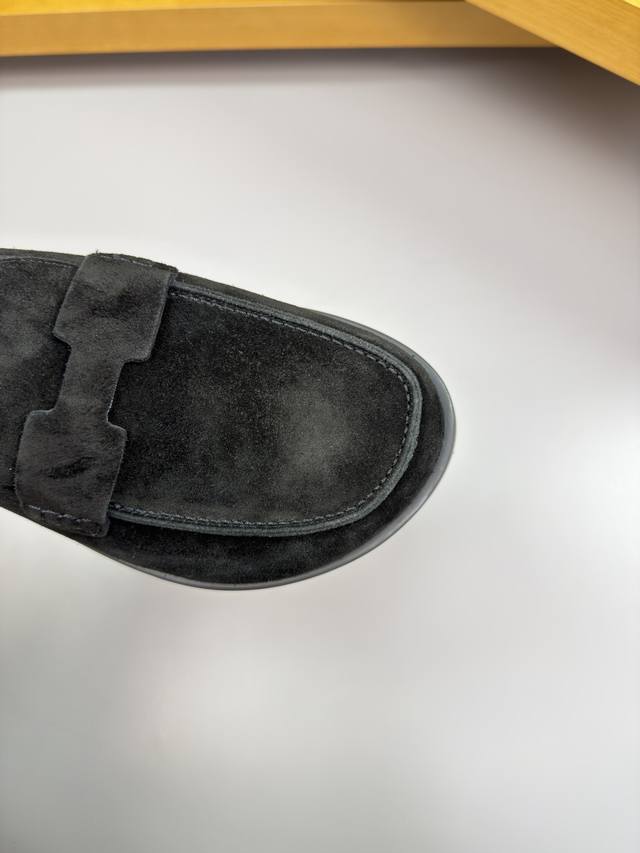 - Upper: High-gloss suede calfskin, outer stitching, brand horizontal decoration