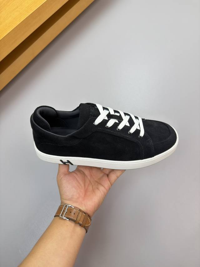 - Upper: High-gloss suede calfskin, with reverse stitching, and cotton padding at the heel for added comfort