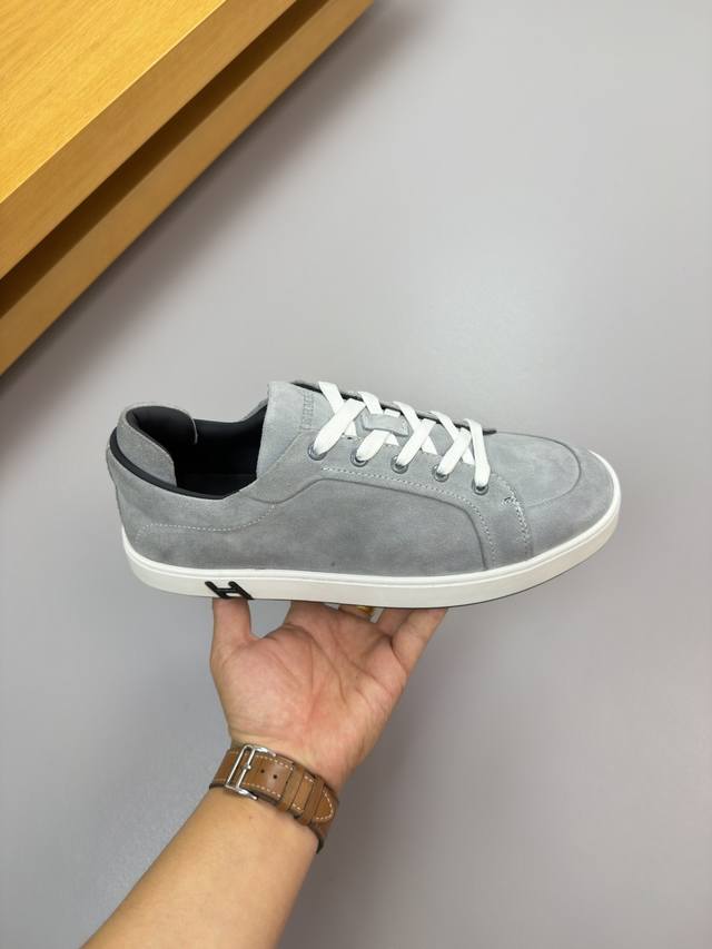 - Upper: Suede calfskin, with hidden stitching, cotton padding at the heel for added comfort