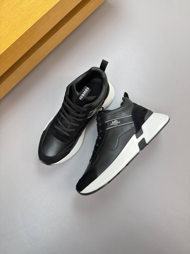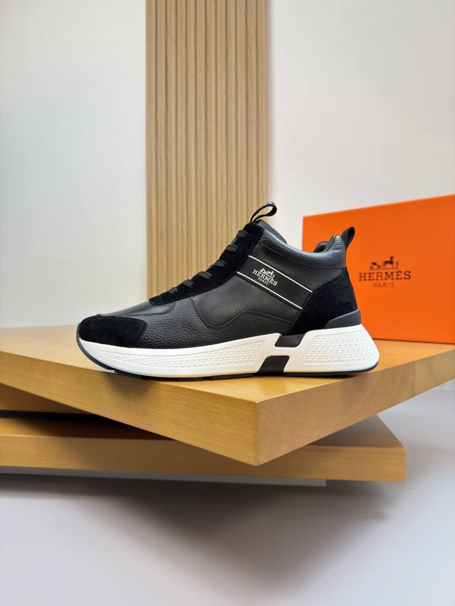 Hermes Ddd - High-end quality original single high-top casual sports shoes Ddd - Upper: Nappa calfskin, lychee calfskin, high-gloss suede calfskin, tongue, shoe body, stitched brand logo webbing Ddd - Lining: Water-dyed cowhide Ddd - Outsole: Ultra-light TPU foam rubber; two-tone molded outsole Ddd - Super high quality control and exquisite workmanship: highlighting high-end luxury Ddd - Size: 39-44 38, 45, custom orders available H0118 Ddd