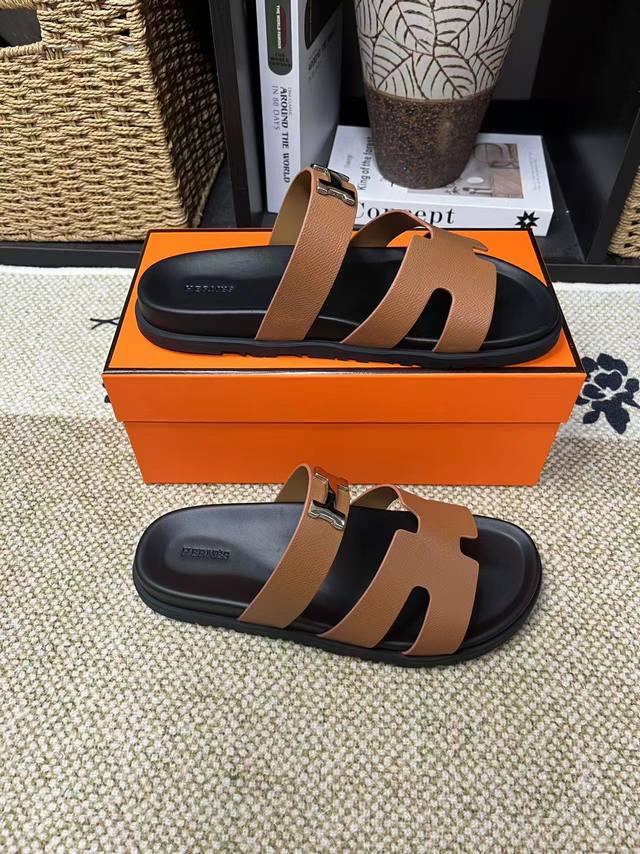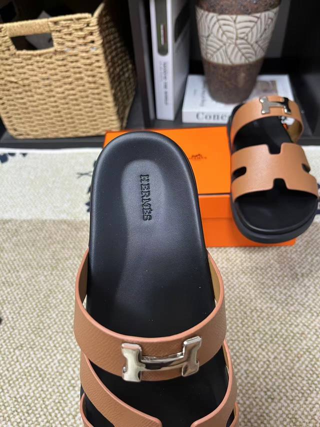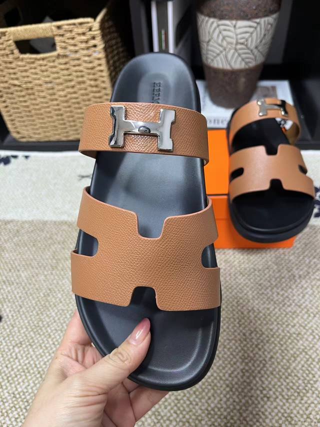 Hermes new style slippers, always in stock. Made of cowhide leather with a dura