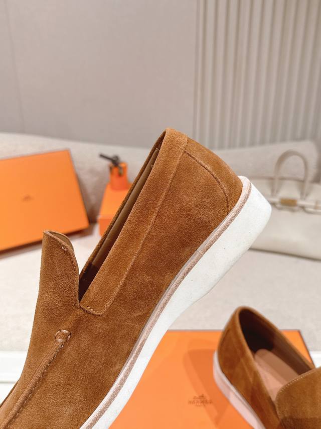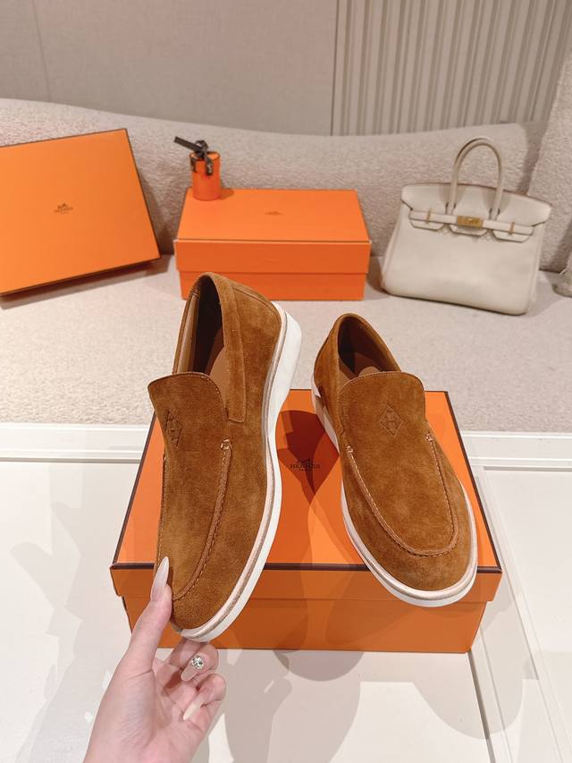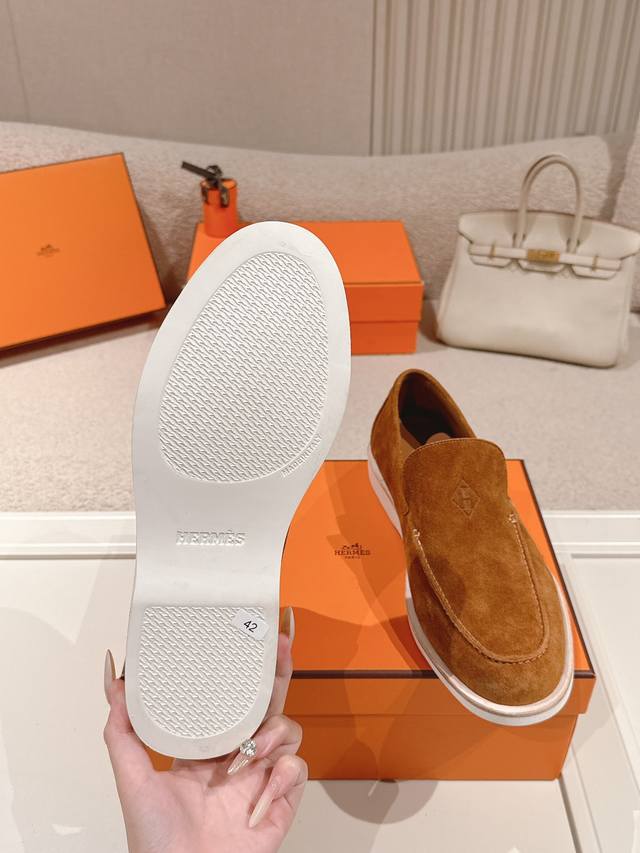 HErmes Sizes: 39-45 46.47 Custom Made Ddd Hermes Fw25 Ne Arrival ~ Autumn/Winter New Loafers + British Retro Design, Classic and Timeless! Original molded last, perfect 1:1 shape, imported high-end materials present exquisite texture! Ddd Outsole: Cow suede Ddd Lining: Mixed sheepskin lining Ddd Outsole: Genuine leather welt + original TPU Ddd Sole thickness: 3cm DDD