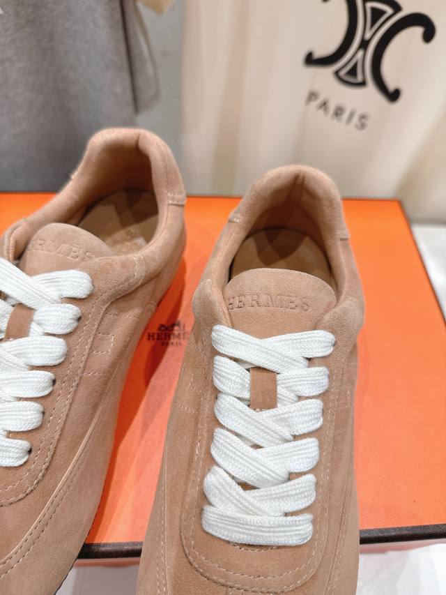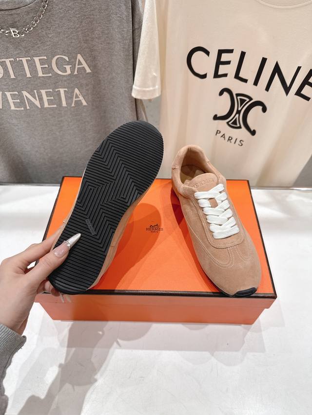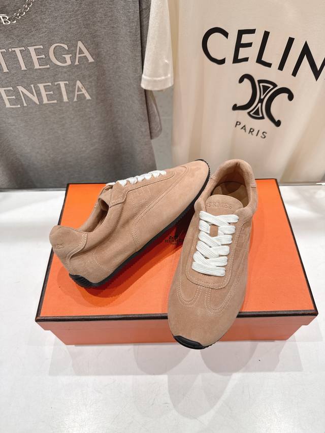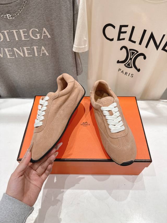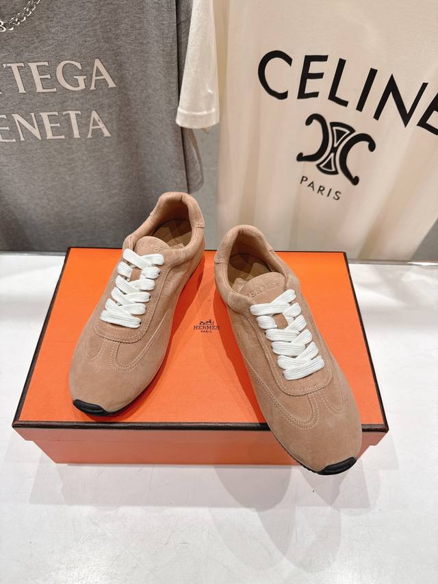 High-quality factory-made Hermes F015 2026Ss new lace-up casual sports shoes, running shoes, Cornetto shoes. Classic sports style + British style color blocking design, classic and timeless! Original mold last, perfect 1:1 shape, imported calfskin presents exquisite texture! Custom-made A-grade high-density private mold outsole, luxurious packaging! Material: Original custom high-gloss suede; Lining: Original custom sheepskin; Insole: Sheepskin; Outsole: Original mold TPU outsole; Sizes: 35-40 (40 is custom-made and non-refundable).