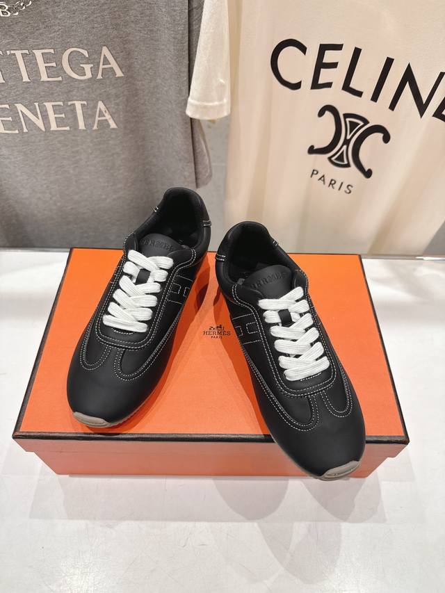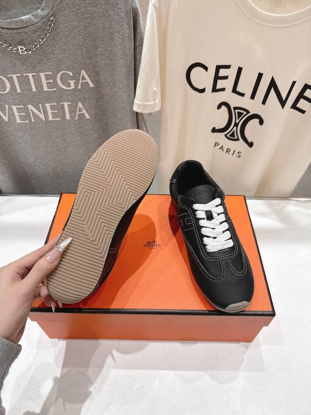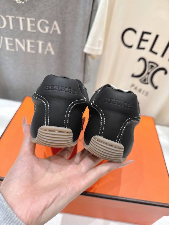 High-quality factory-made Hermes F015 2026Ss new lace-up casual sports shoes, running shoes, Cornetto shoes. Classic sports style + British style color blocking design, classic and timeless! Original mold last, perfect 1:1 shape, imported calfskin presents exquisite texture! Custom-made A-grade high-density private mold outsole, luxurious packaging! Material: Original custom-made top layer cowhide. Lining: Original custom-made sheepskin. Insole: Sheepskin. Outsole: Original mold TPU outsole. Sizes: 35-40. Size 40 is custom-made and non-refundable.