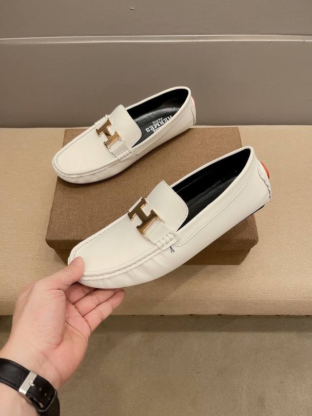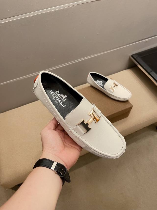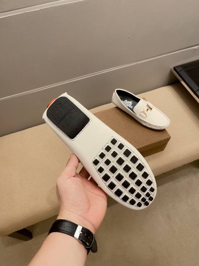 Official New Arrival + Hot Selling Item, Hermes Slip-on Boat Shoes, the same style worn by Hu Ge! Luxurious, understated, and sophisticated, made of imported pebbled cowhide, comfortable and breathable, with a breathable lining that prevents color fading. Continuing Hermes' century-long commitment to crafting unique products for the masses, this shoe features designs by a Turkish master and is available simultaneously at the flagship store at 24 Rue Saint-Tr