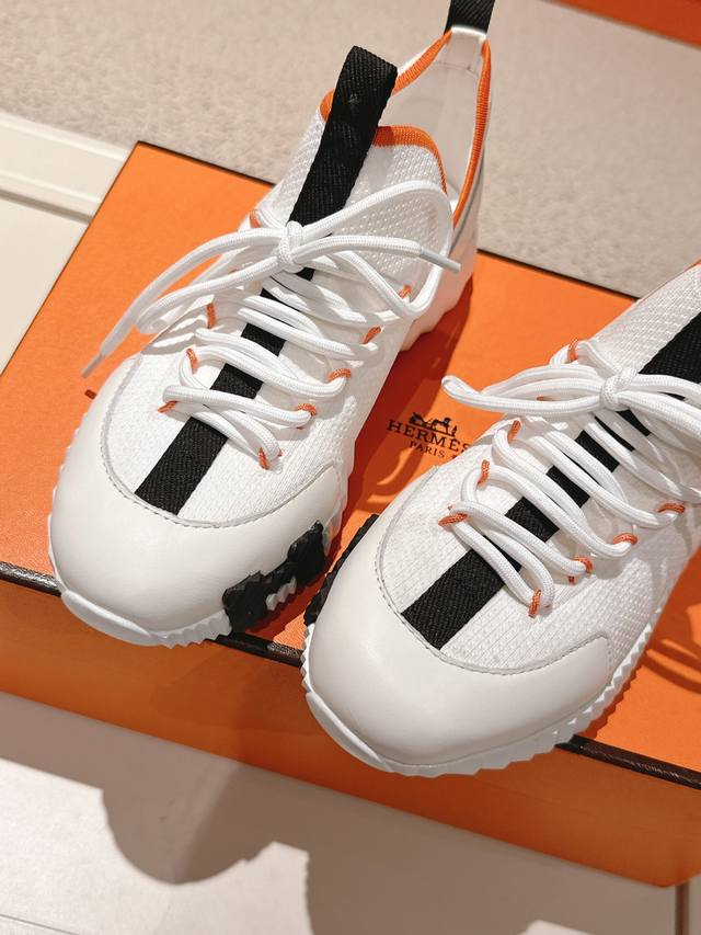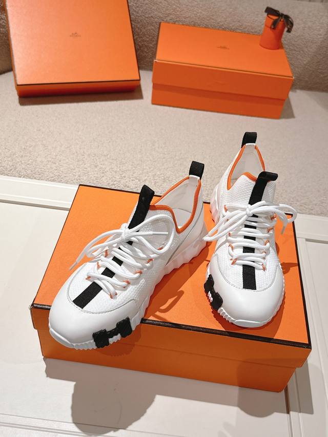 Price Guaranteed! Top-Tier Hermes Version # Hermes Classic Couple Casual Sneakers These casual sneakers combine high-tech canvas and suede goatskin, featuring an exaggerated "H" letter on the rubber sole. The italic design and vibrant colors exude energy, continuing the brand's design inspiration. Enjoy a light and carefree stroll through the city. Comes with exquisite boutique packaging. Material: Original special fabric and cowhide suede. Lining: Custom breathable mesh. Outsole: Mold-molded TPU + rubber foam material. Sole thickness: 3cm. Sizes: 35-45.