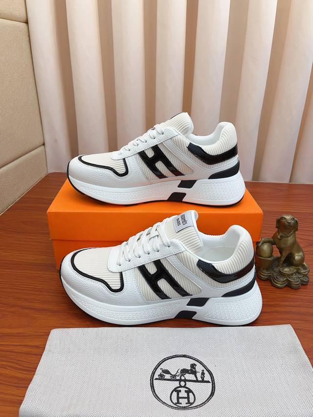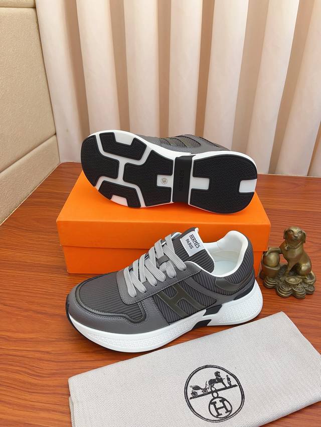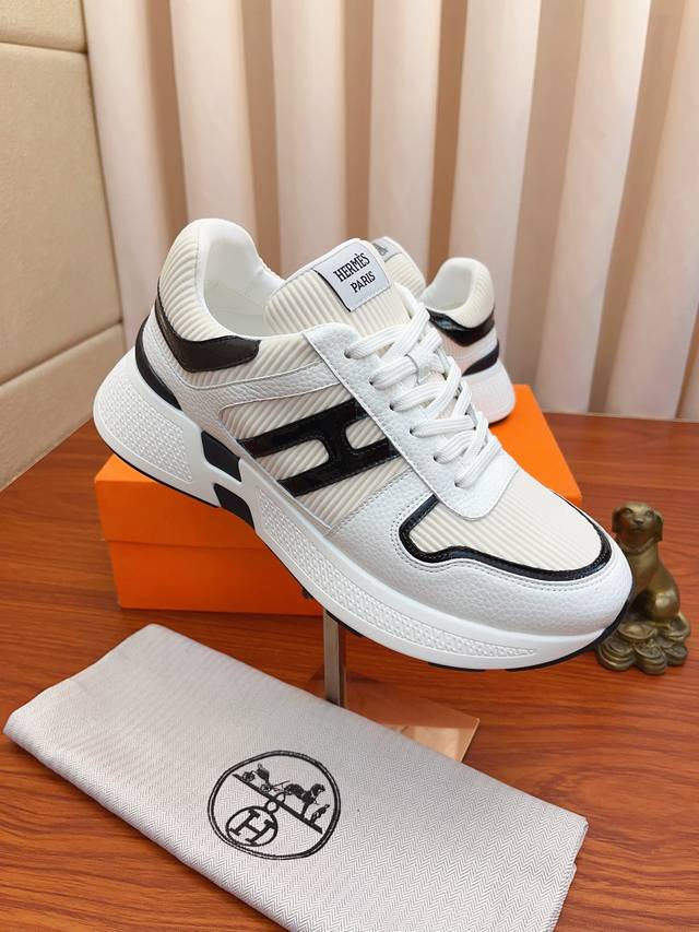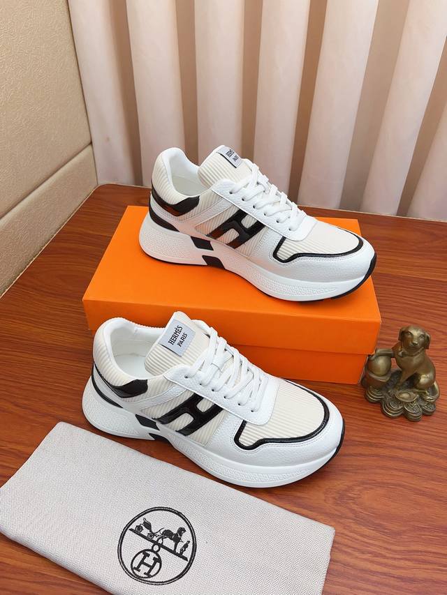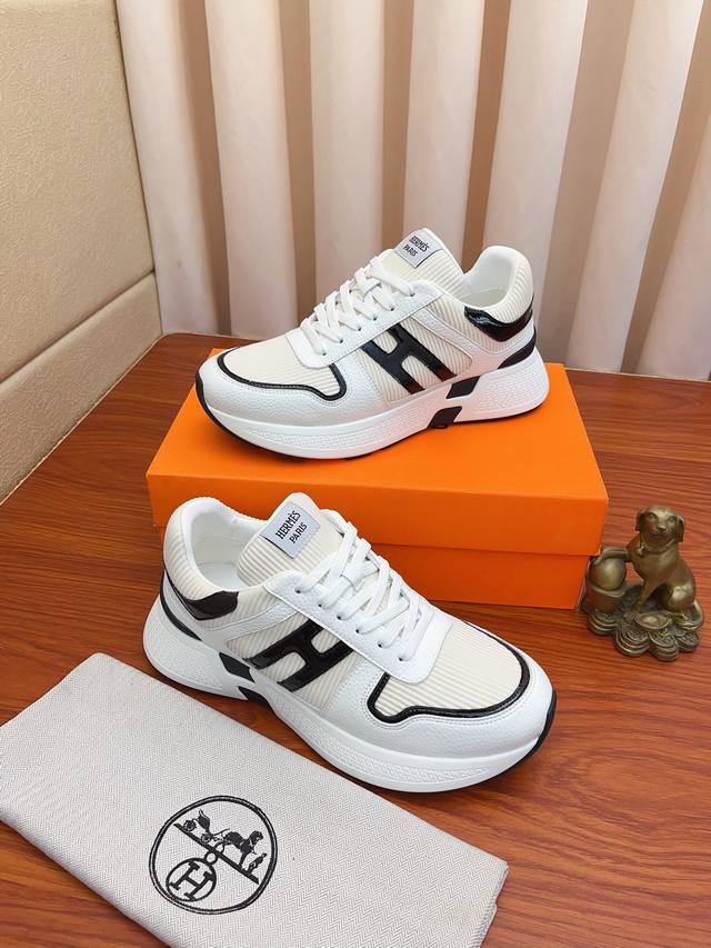 Price: Hermes high-end quality original single-piece shoes. Upper: tumbled calfskin, suede calfskin, H-pattern stitched on the shoe body; Outsole: ultra-lightweight TPU foam rubber; two-tone molded outsole; ultra-high quality control and exquisite workmanship: highlighting high-end luxury. Sizes 38-44 and 45 available for custom orders.