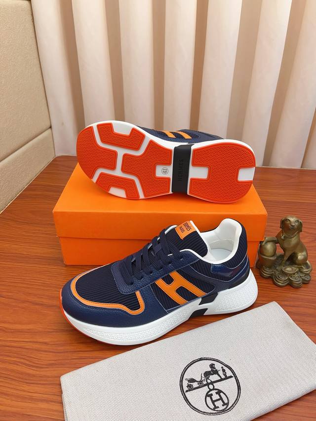 Price: Hermes high-end quality original single-piece shoes. Upper: tumbled calfskin, suede calfskin, H-pattern stitched on the shoe body; Outsole: ultra-lightweight TPU foam rubber; two-tone molded outsole; ultra-high quality control and exquisite workmanship: highlighting high-end luxury. Sizes 38-44 and 45 available for custom orders.