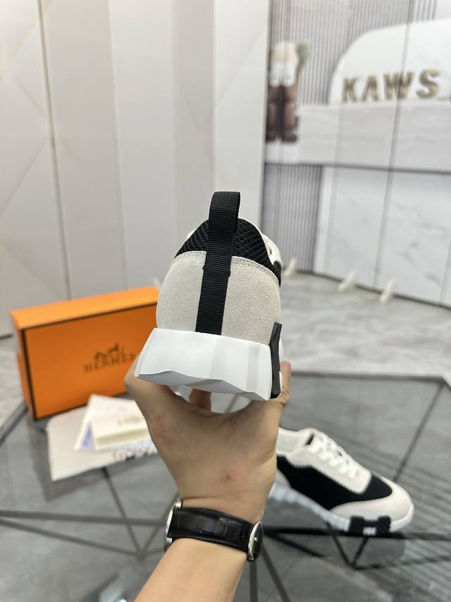Men's size +10 Hermes top version# Hermes Deep series couple's white shoes casua