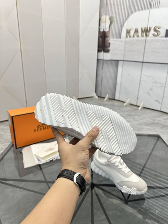 Men's size +10 Hermes top version# Hermes Deep series couple's white shoes casua