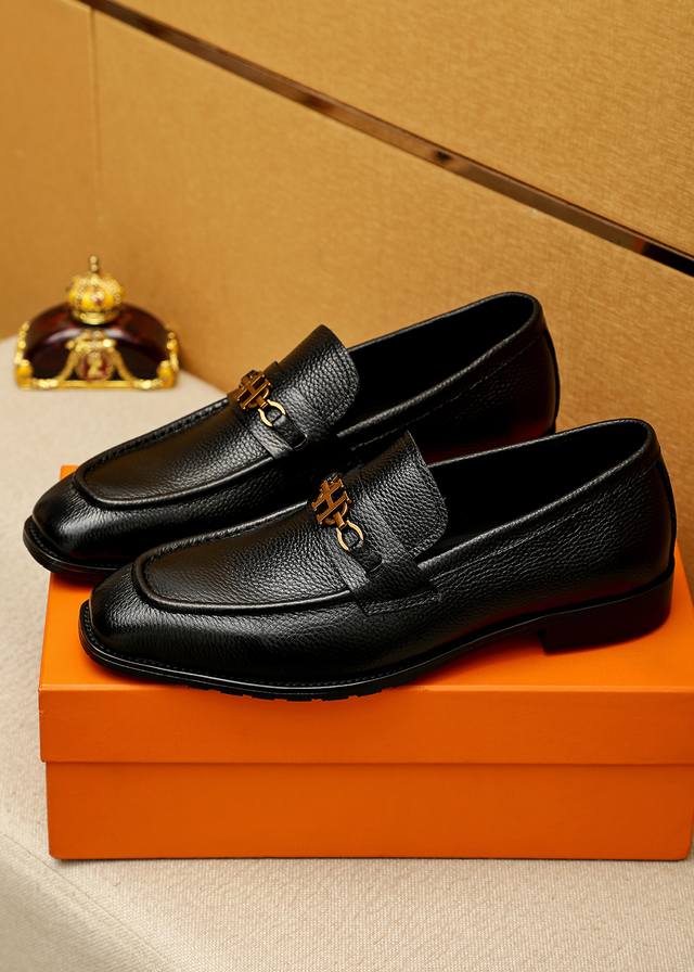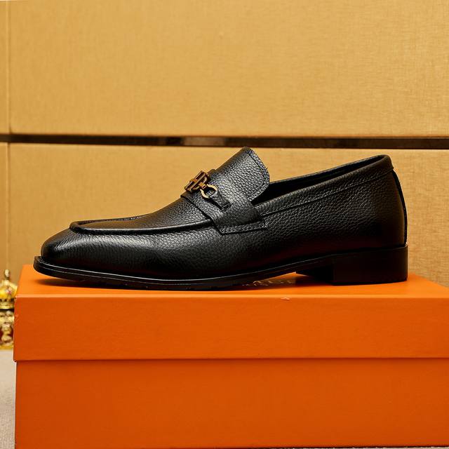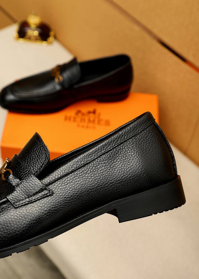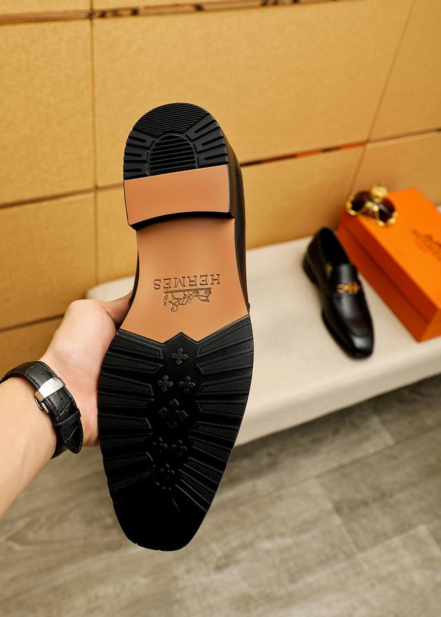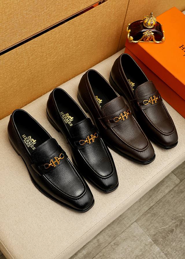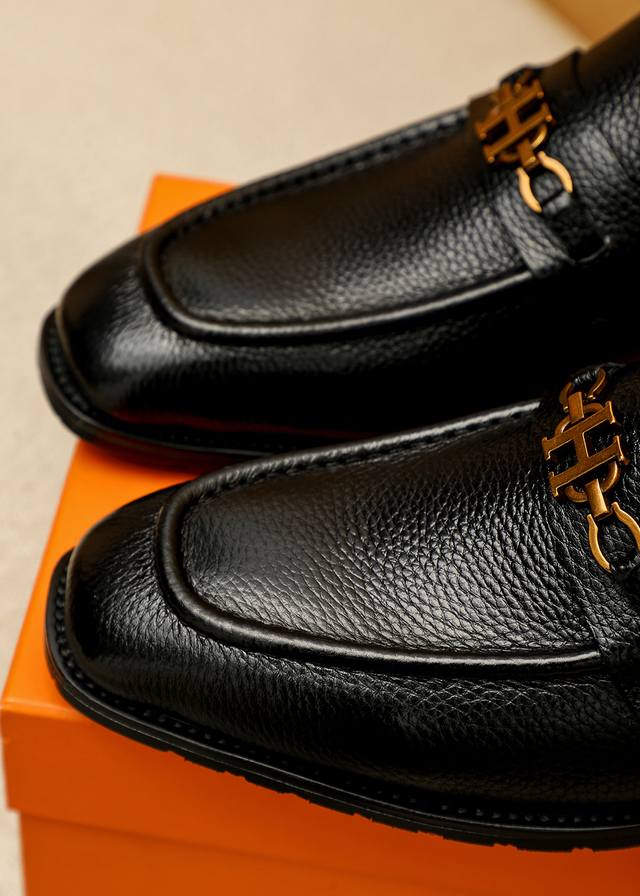 Product Trademark: Hermes Casual Leather Shoes DDD True Sizes: 38-44, 45, 46 (Custom Made) DDD Product Materials: Selected imported top-grain lychee-textured cowhide upper + luxurious hardware buckles, imported water-dyed cowhide lining. Strong three-dimensional visual effect, original outsole DDD Colors: 2 colors available DDD