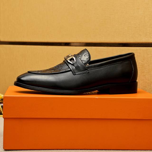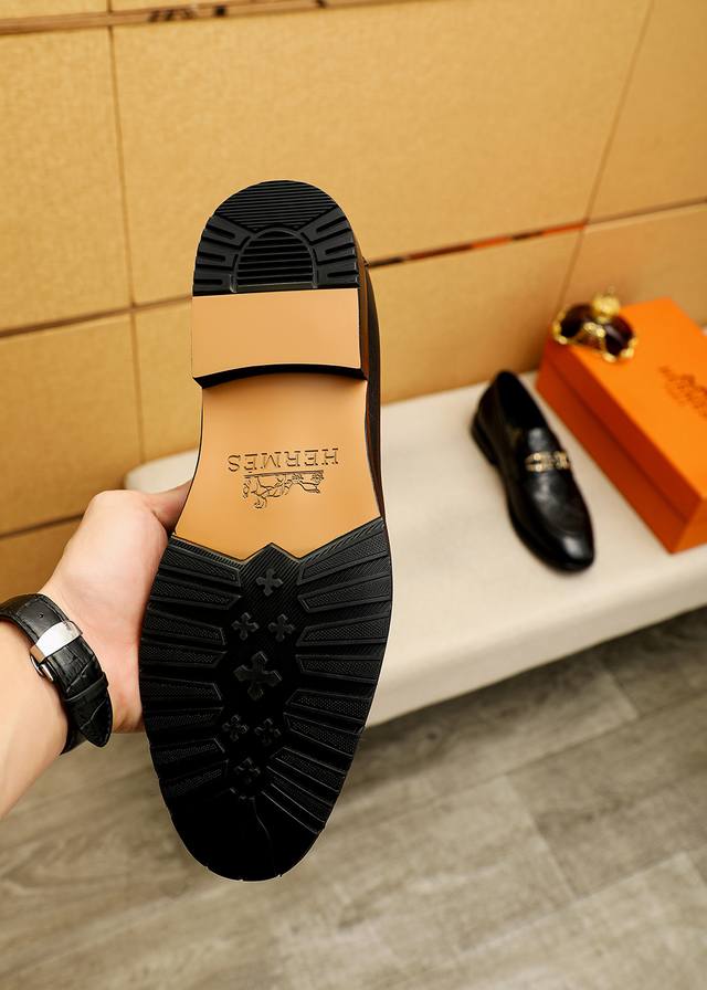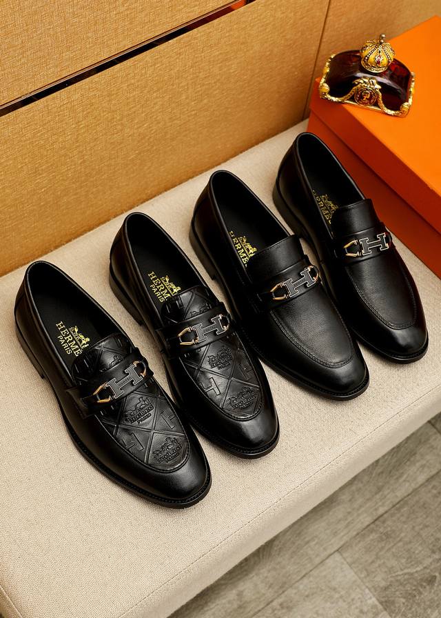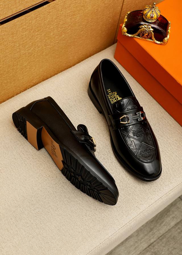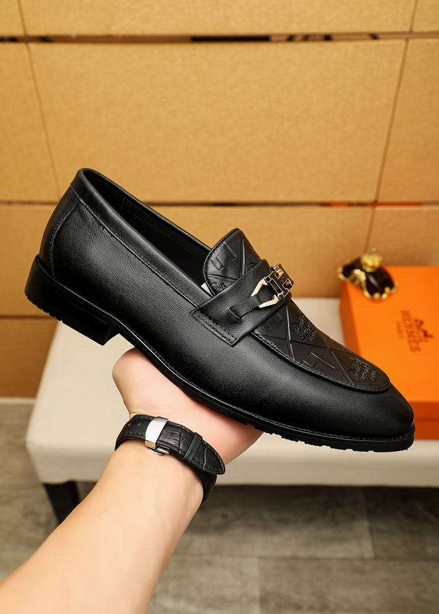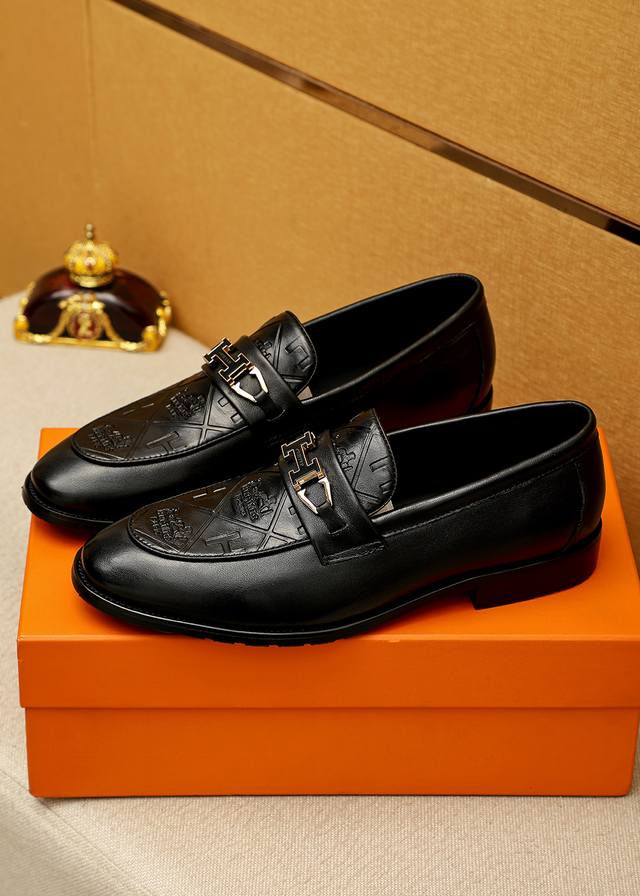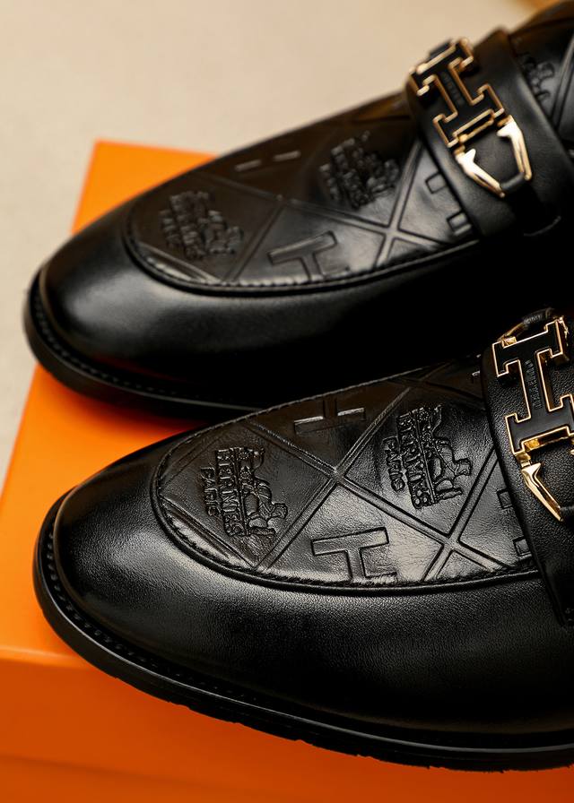 Product Trademark: Hermes Casual Leather Shoes True to Size: 38-44, 45-46 (Custom Made) Materials: Selected imported top-grain calfskin embossed upper + luxurious hardware buckles, imported water-dyed cowhide lining. Strong three-dimensional visual effect, original outsole. Colors: 2 colors available.