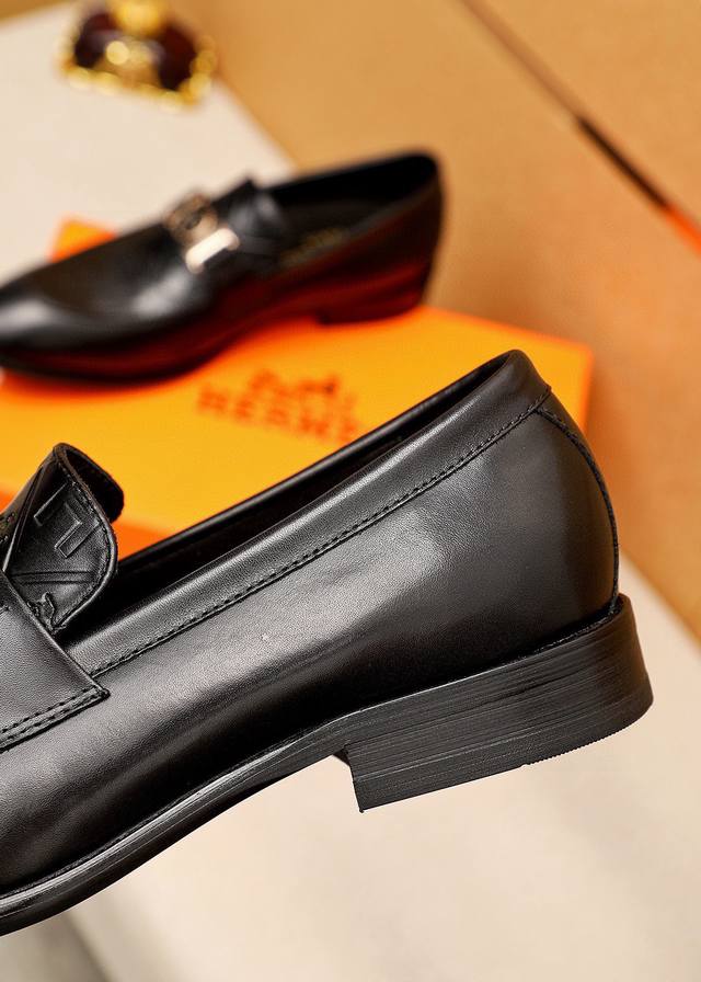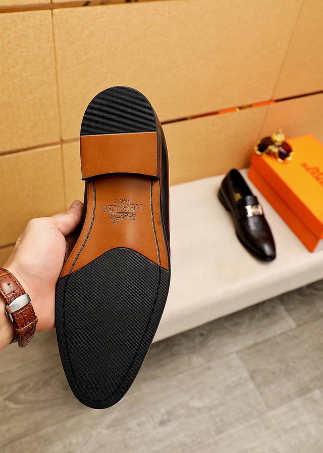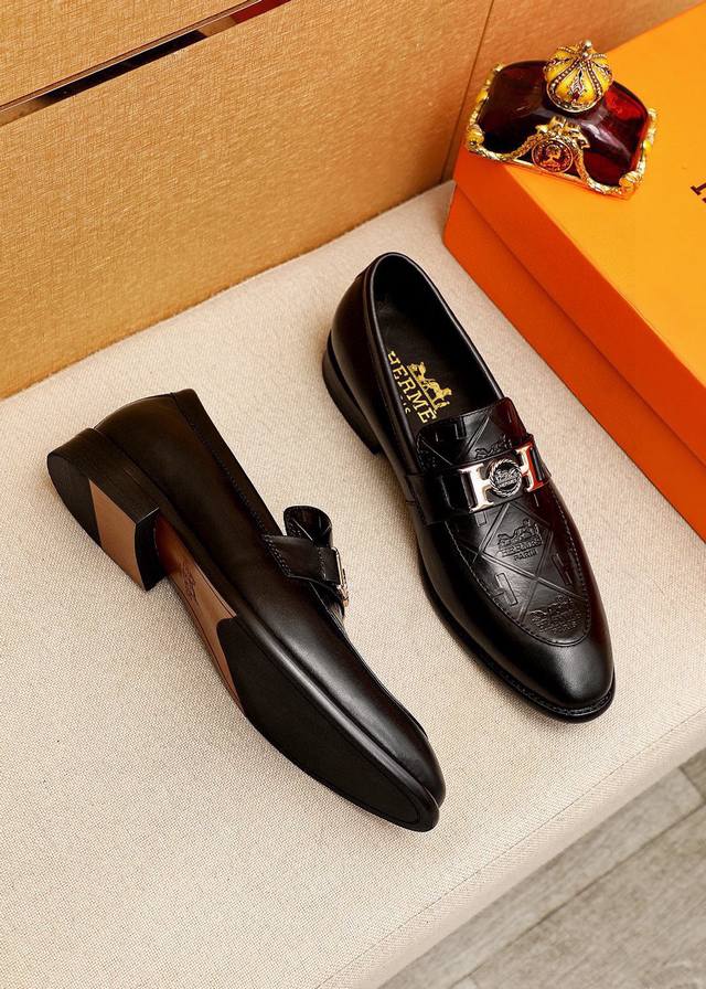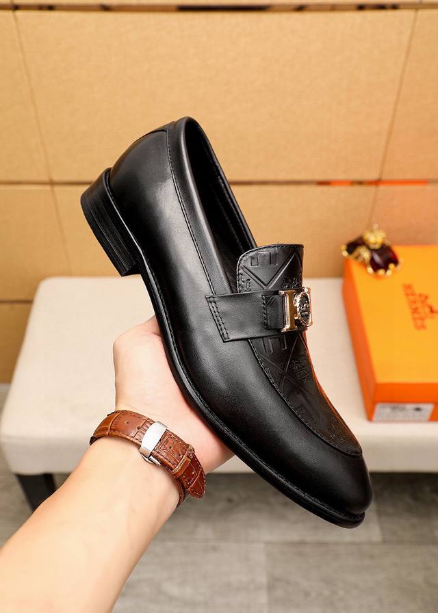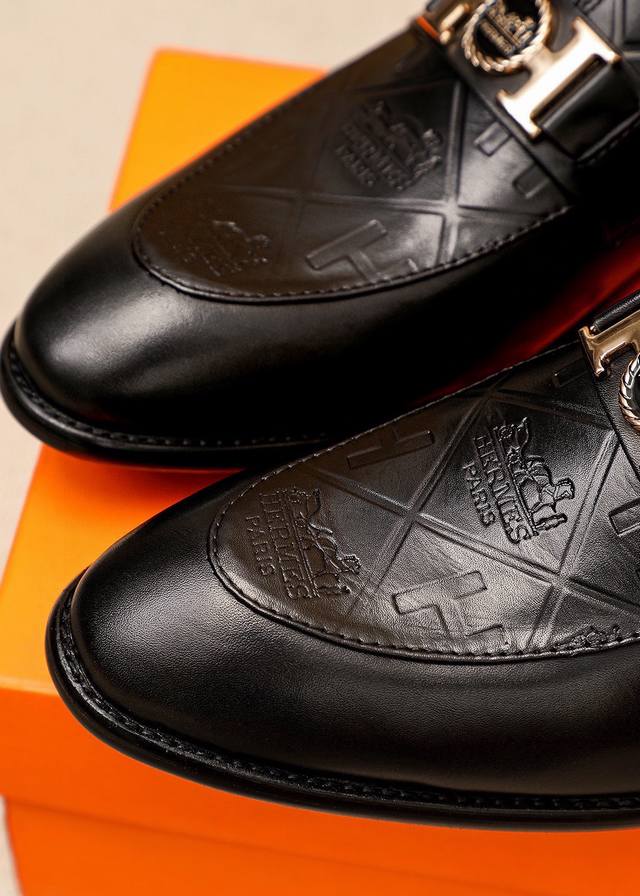 Product Trademark: Hermes Casual Leather Shoes True to Size: 39-44, 38, 45, 46 (Custom Made) Materials: Selected imported top-grain calfskin embossed upper + classic hardware buckles, imported water-dyed cowhide lining. Strong three-dimensional visual effect, combined outsole. Colors: 2 colors available.