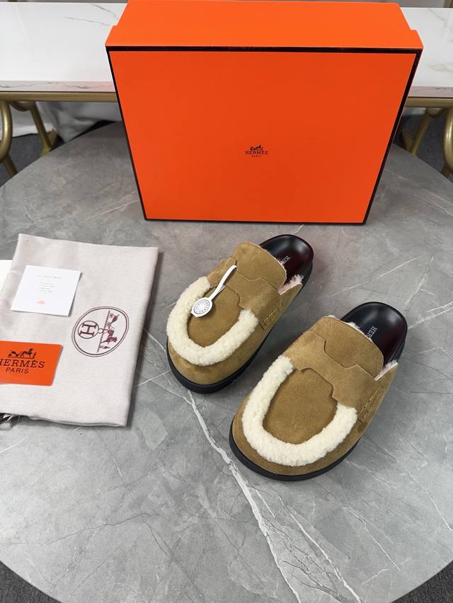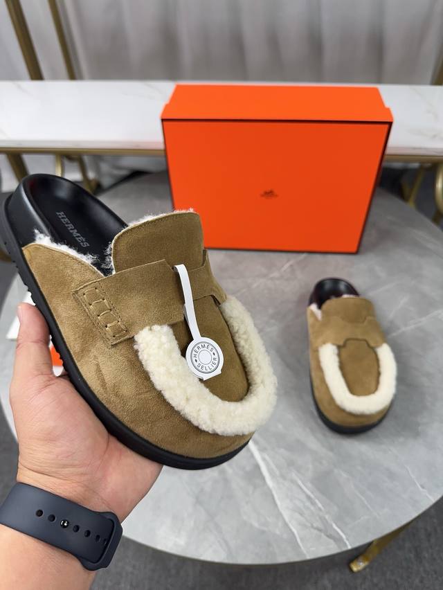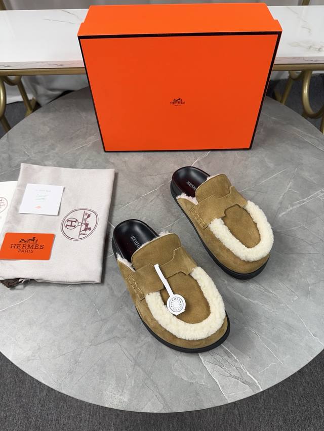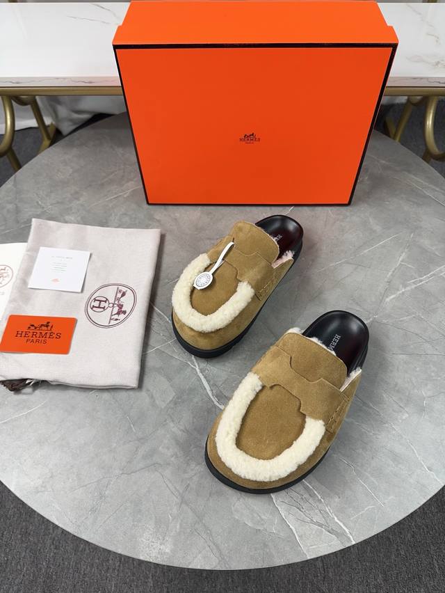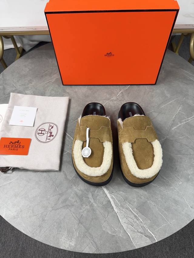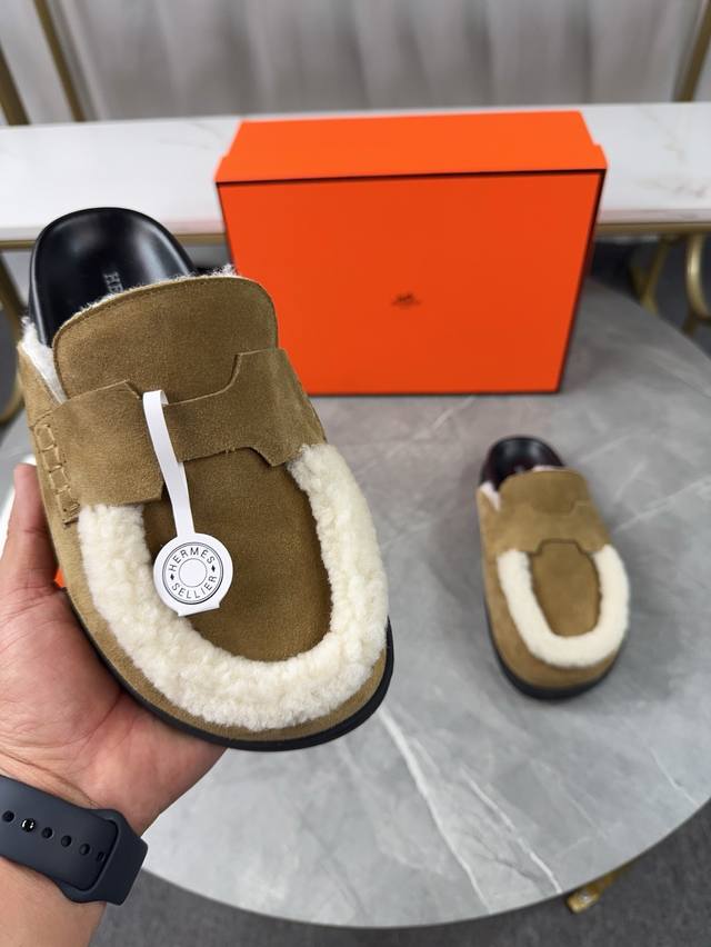 Real Price: Hermes Birkenstock Mules These versatile slippers are a must-have for spring and summer. They offer a casual yet sophisticated feel, excellent comfort, and a playful oversized design. The slip-on design is convenient and practical. Upper: Original high-gloss calfskin Lining: Fleece Outsole: Original TPU platform + rubber sole Sizes: Women's sizes 35-40, 40-41, -42 (no returns/exchanges); Men's sizes 38-45, 45 (no returns/exchanges).