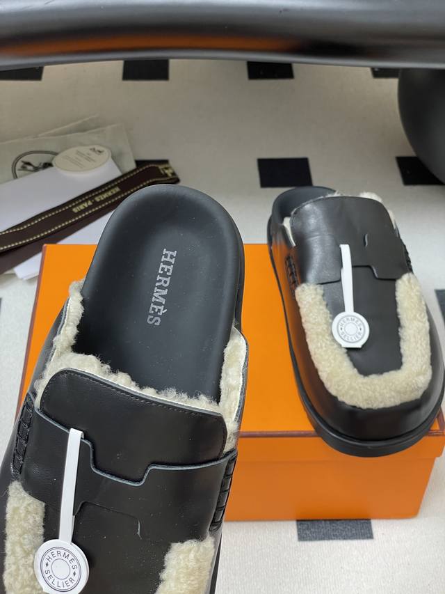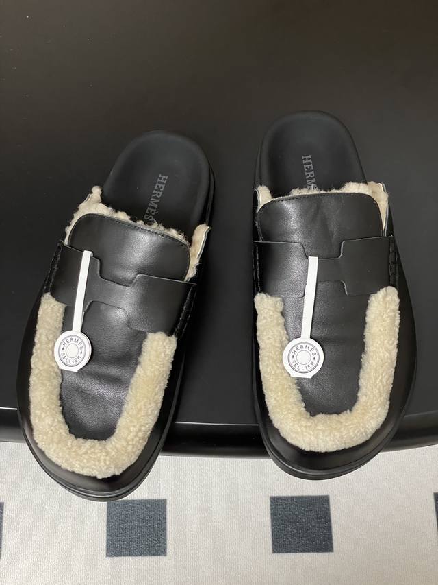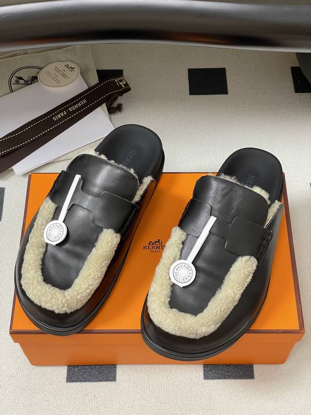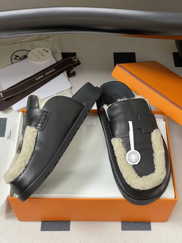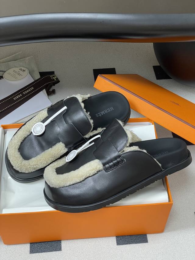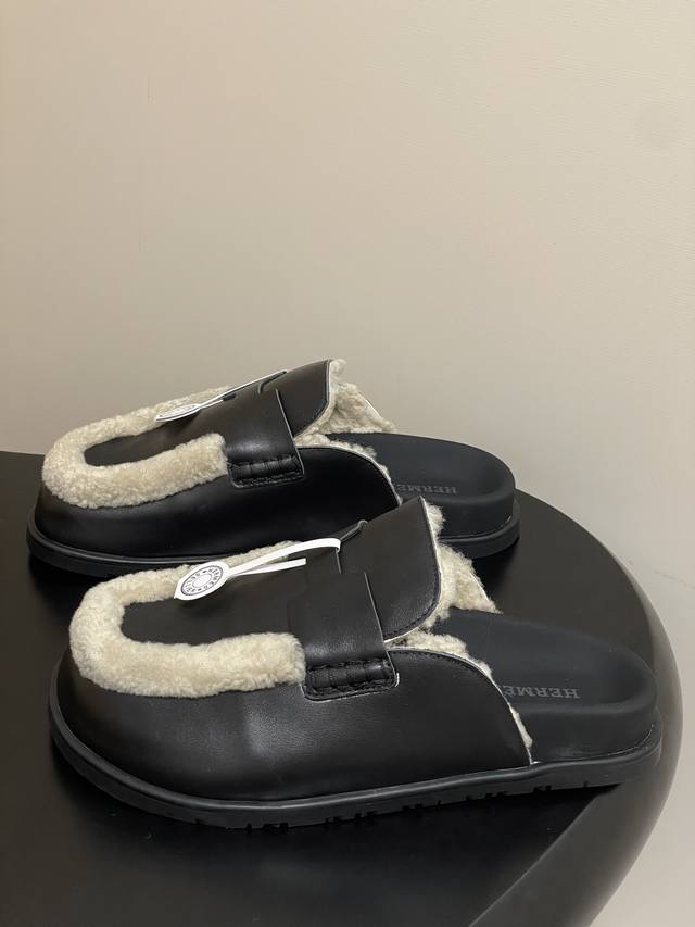 Top Quality Hermes Go Mule Series Classic Style Birkenstock Wool Mule Slip-on Slip-on Casual Slip-on Shoes