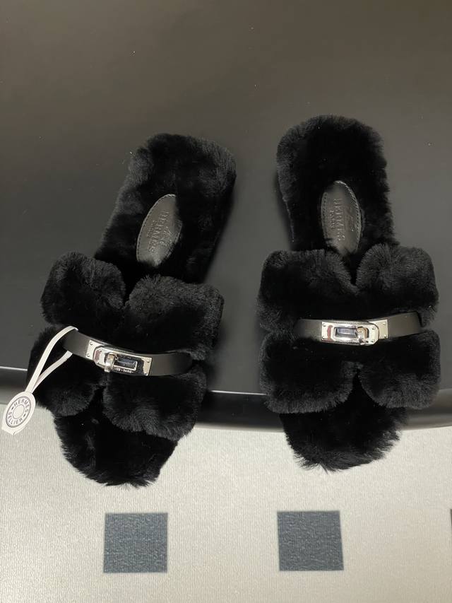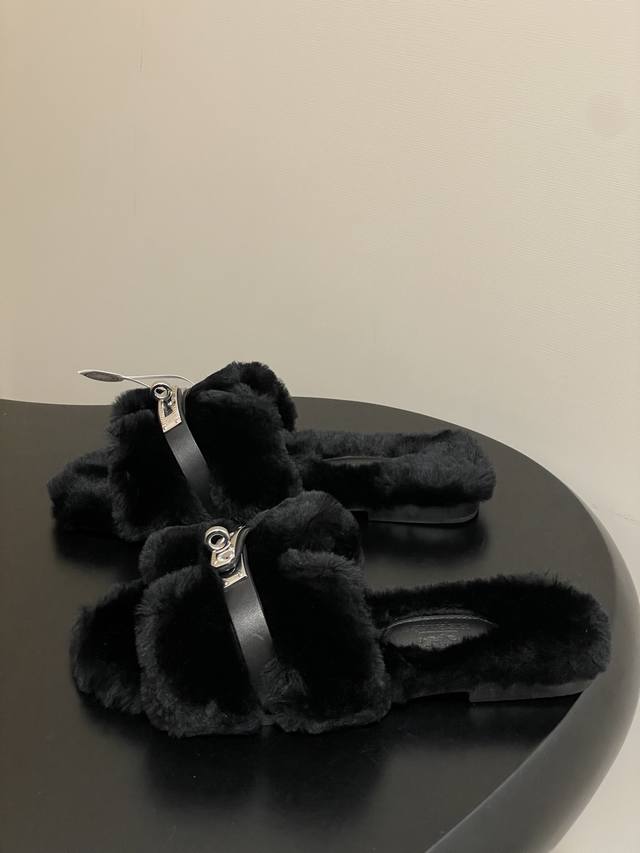 Top Quality Hermes Kelly Buckle 'H' Wool Slippers - A Timeless Classic! These classic 'H' slippers are even more eye-catching with the Kelly buckle! A pair of flat slippers, these casual and comfortable shoes are suitable for everyday wear at home or in relaxed occasions. The style is simple yet fashionable, combining practicality and style. Made entirely of wool, they look incredibly soft and fluffy, providing a warm and comfortable feel both visually and under the skin, making them especially suitable for cooler seasons or when you want to create a cozy atmosphere. The choice of this plush material reflects the brand's attention to detail, ensuring both luxury and comfort. Upper: Wool Lining/Insole: Wool Outsole: Italian Grade A Double-Layer Genuine Leather Sizes: 35-39 40, 41, 42 - Custom orders are non-refundable.