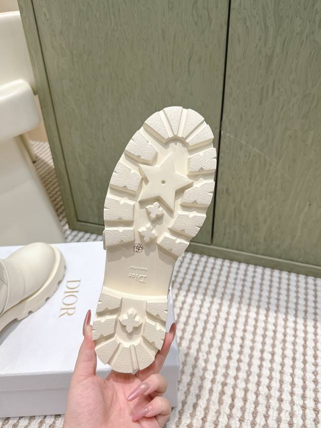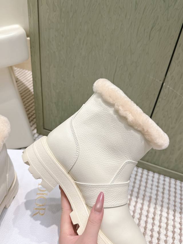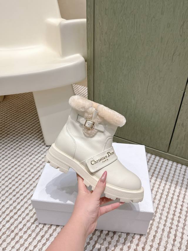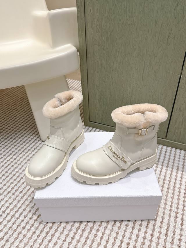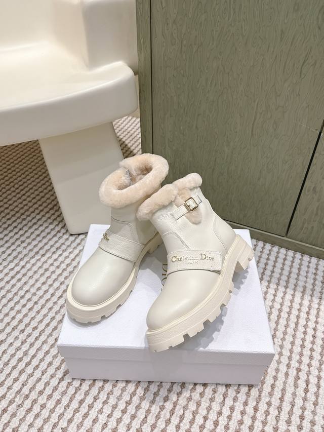 High-quality Dior-Mor series punk-style warm and cozy women's boots. 2025 Autumn/Winter new style, celebrity style, letter logo, hardware buckle, side zipper, thick sole, round toe, slip-on riding boots. Material: Imported full-grain calfskin upper + 100% lamb's wool lining + original mold I-sole. Sole thickness: 3.5cm. Size: 35-41 (standard size 40.41). Custom orders are non-refundable.