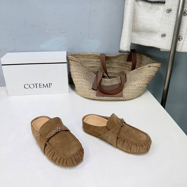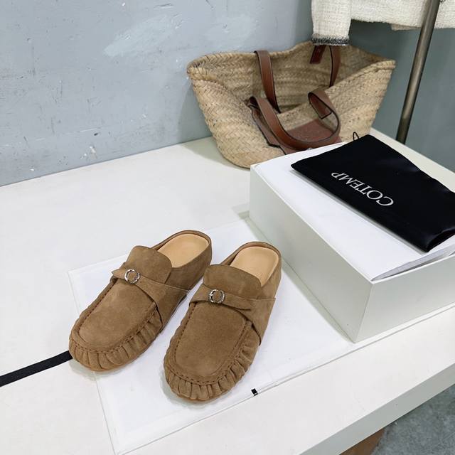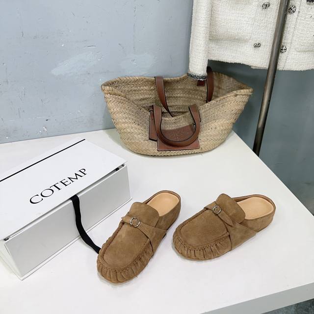 High-quality factory! Niche trendy brand Cotemp Bahati Birken suede slippers, vintage closed-toe buckle platform half-slippers. The soft loafers feature a single piece of upward-facing leather piece with a moccasin structure, blending seamlessly with the comfortable and versatile Birken slipper shape. Made of soft, suede cowhide, it's wrapped with hand-pleated stitching, outlining a rounded toe for a relaxed and effortless style. The iconic Bahati apple buckle adds a touch of refined detail. The 3cm soft footbed design elongates the leg line while ensuring stable walking. The upper is made of original cowhide suede, the insole is made of water-dyed cowhide, and the sole is made with an original mold and a rubber outsole. Sizes: 35-40, 40-41. Custom orders are non-refundable and non-exchangeable. Comes with original packaging.