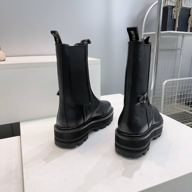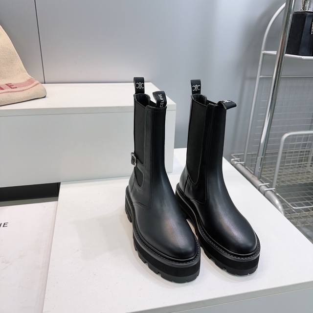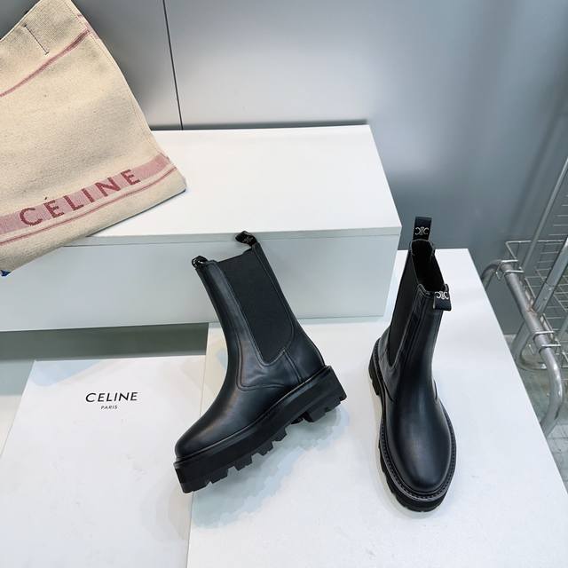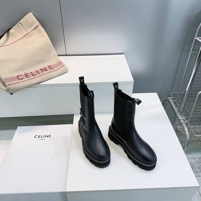 High-quality factory! Top-quality Celine 25Ss Fall/Winter Triumph Classic Retro Platform Lace-up & Buckle Martin Boots! A series of trendy items exclusively customized for goddesses this fall and winter! The lace-up platform design provides height, the cut is perfect, and these fashionable shoes are trendy and stylish this season. A versatile and simple style, they're a perfect match! The upper is made of imported calfskin, the insole is made of sheepskin, and the outsole is made of original molded, non-slip, and wear-resistant rubber! Sizes: 35-42, 40, 41, 42. Custom orders are non-refundable and non-exchangeable. Comes with original packaging.