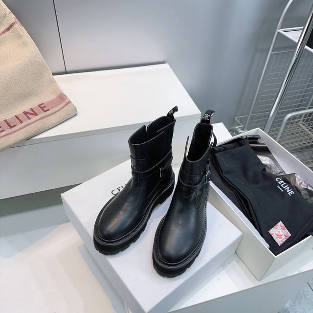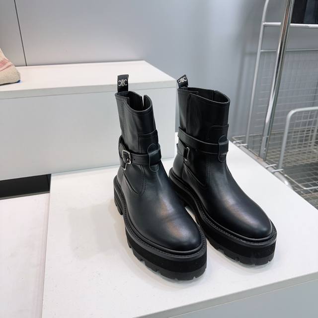 High-quality factory! Top-quality Celine 25Ss Fall/Winter Triumph Classic Retro Platform Lace-up & Buckle Martin Boots! A series of trendy items exclusively customized for goddesses this fall and winter! The lace-up platform design provides height, the cut is superb, and these trendy shoes are fashionable and stylish this season. A versatile and simple style, perfect for any outfit! The upper is made of imported calfskin, the insole is made of sheepskin, and the outsole is made of original molded, non-slip, and wear-resistant rubber! Sizes: 35-42, 40, 41, 42. Custom orders are non-refundable and non-exchangeable. Comes with original packaging.