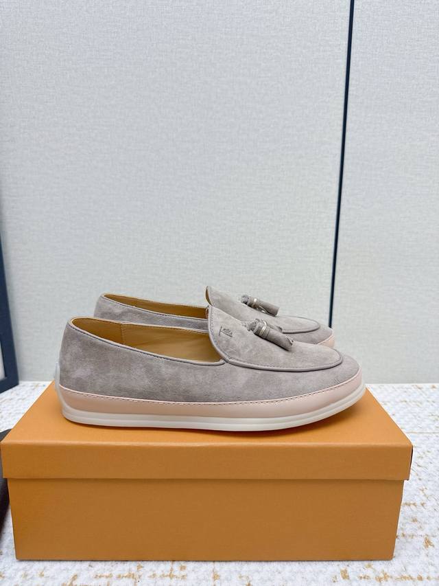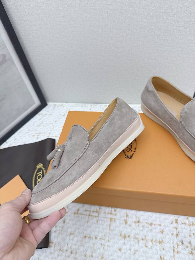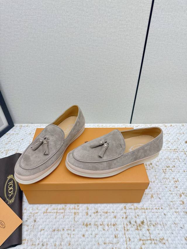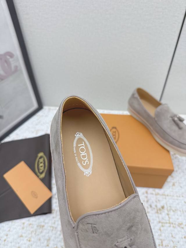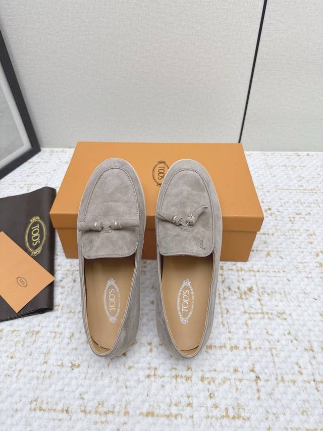 Tods loafers. These loafers are crafted from fine sheepskin leather, with a premium cowhide lining, adorned with a metal logo buckle, and feature a rubber outsole with pegs at the heel. Casual and versatile, they are a timeless classic. Sizes #39-45, sizes 38 and 46 can be custom-made.