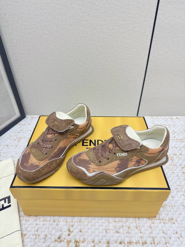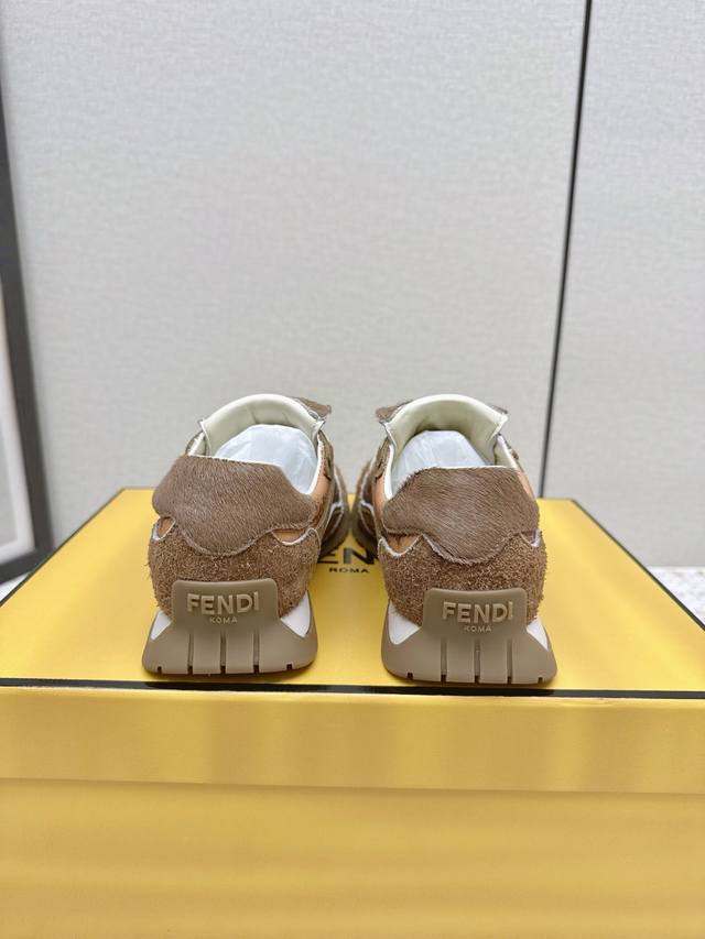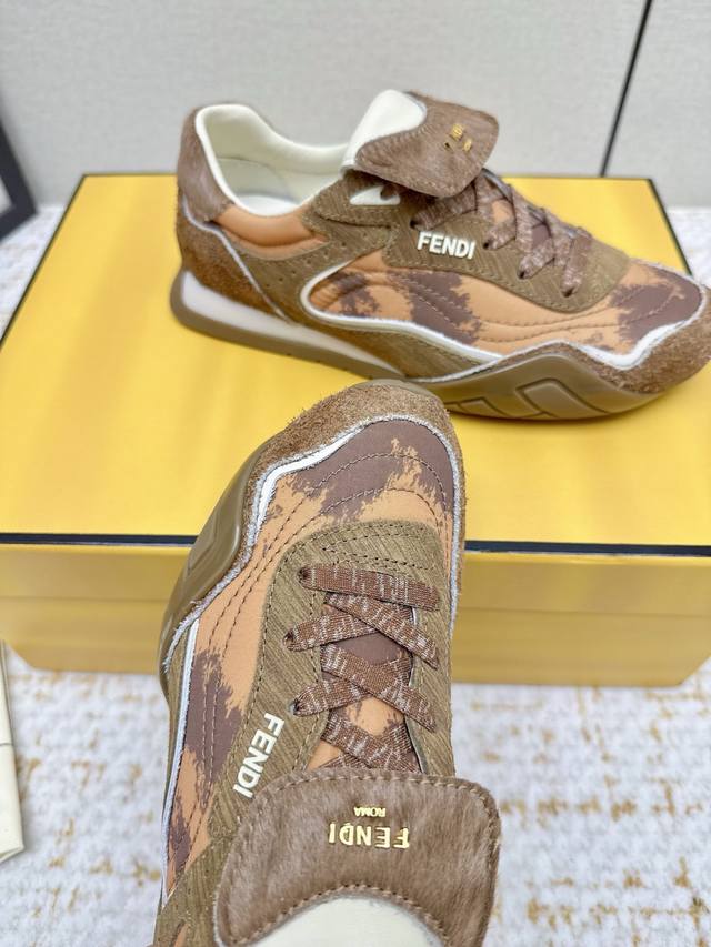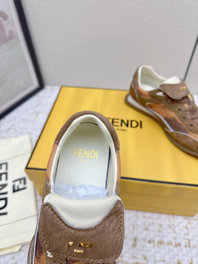 High-quality women's and men's shoes from the factory. Fendi's new arrivals - German training shoes for women, October new arrivals! These exquisite German training shoes are a must-have. Also included is a milk apricot-colored embossed box bag with gold buckles and tassel details, exuding both luxury and playfulness. And these German training shoes, with their horsehair tongue and retro silhouette, are incredibly stylish. The complete outfit creates a sophisticated and relaxed vibe, making you look like a walking fashion magazine. #Fendi #GermanTrainingShoes The asymmetrical upper with its suede and suede textures, along with the flowing lines and stitching, evokes ripples in water, a tribute to Fendi's fluid and lightweight tradition. The sole is inspired by the "Astuccio" fur inlay pattern, a unique feature that sets it apart from any of our other new sneakers. They're so pretty and heartwarming! Sizes: 35-44