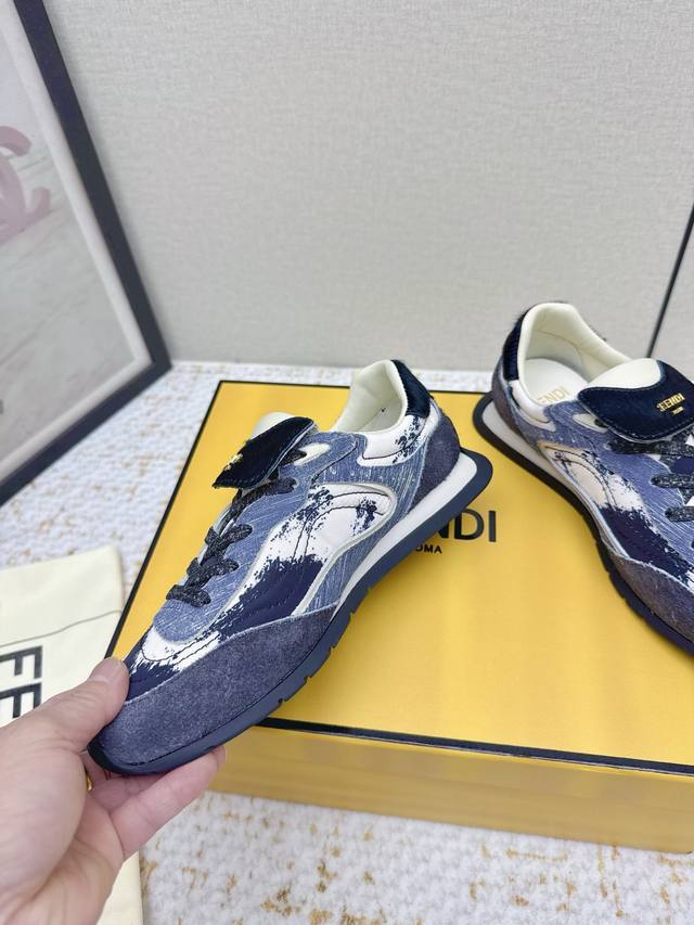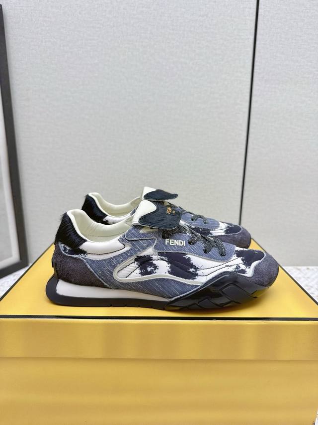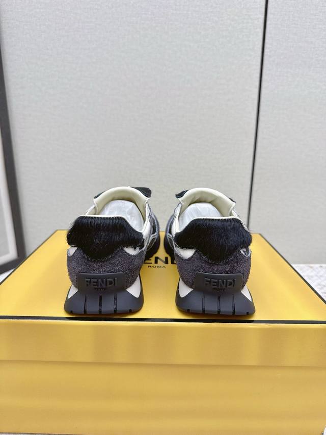 High-quality women's and men's shoes from the factory. Fendi's new arrivals - German training shoes for women, October new arrivals! These exquisite German training shoes have arrived, exuding a refined and sophisticated vibe. Also included is a milk apricot-colored embossed box bag with gold buckles and tassel details, looking both luxurious and playful. And these German training shoes, with their horsehair tongue and retro silhouette, are incredibly stylish. The complete outfit creates a sophisticated yet relaxed atmosphere, making you look like a walking fashion magazine. #Fendi #GermanTrainingShoes The asymmetrical upper with its combination of suede and velvet textures, along with the flowing lines and stitching, evokes the feeling of ripples in water, a tribute to Fendi's flowing and light tradition. The sole is inspired by the "Astuccio" fur inlay pattern, a unique feature that sets it apart from any of our other new sneakers. They look so good, so heartwarming! Sizes: 35-44