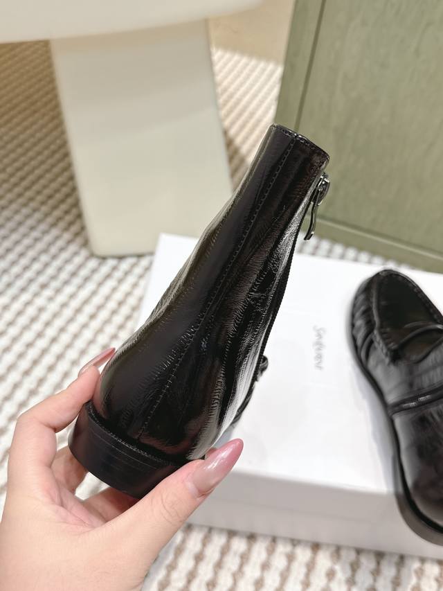 High-quality Yves Saint Laurent 25Ss new YSL small logo high-top loafers. The iconic small logo is the soul of these shoes, presented with a low-key yet refined style. Unlike the ostentatious large logo, it is quiet yet eye-catching, outlining YSL's unique fashion with simple lines, subtly revealing the brand's profound heritage. The classic almond-shaped design of the toe cleverly flatters the foot shape, visually lengthening the foot line and highlighting elegance and delicacy. Whether paired with simple wide-leg pants or a playful mini skirt, it can easily showcase different styles, becoming the finishing touch to any outfit. Material: Original custom leather; Lining: Sheepskin insole; Outsole: Italian imported genuine leather; Size: 35-39, 40, 41, 42, 43 (customized).