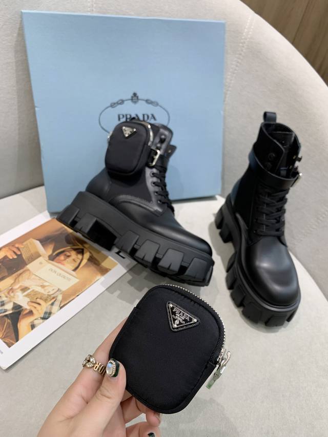 Hot-selling Prada, the highest quality 1:1 replica on the market. Upper: Imported top-grain matte split-edge leather + waterproof nylon fabric, high-gloss top-grain cow patent leather + silk top-grain sheepskin lining + all edge finishing processes comparable to the original. Outsole: TPU + vacuum sealing. Professional bag factory, all hardware is 1:1 molded, all with logo, truly 1:1 replica. Sizes: Women's 34-41. Factory price: [Price not specified]
