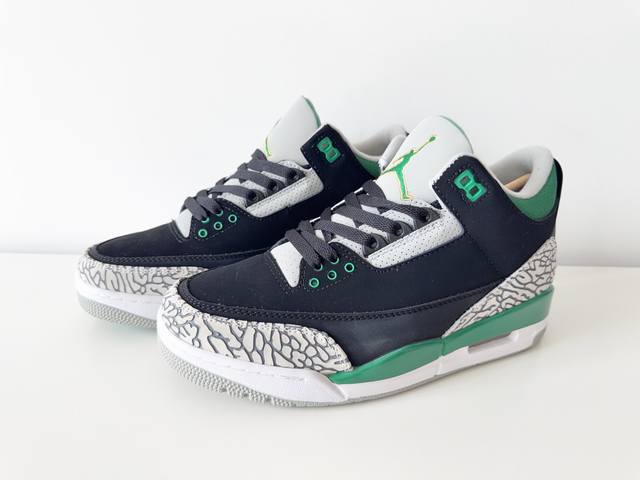 Jordan Air Jordan 3 Retro Pine Green Trendy Comfortable Mid-Top Retro Basketball Shoes for Men and Women, Black/Green, Sizes 36-47 DDD