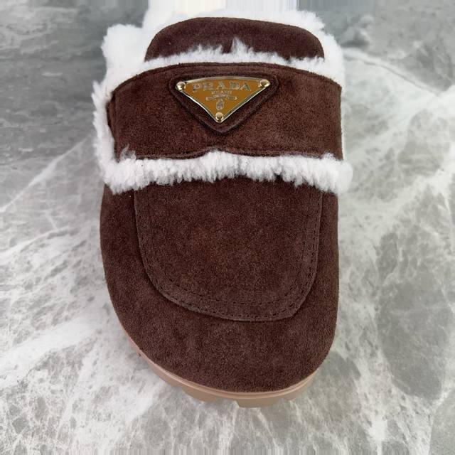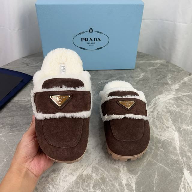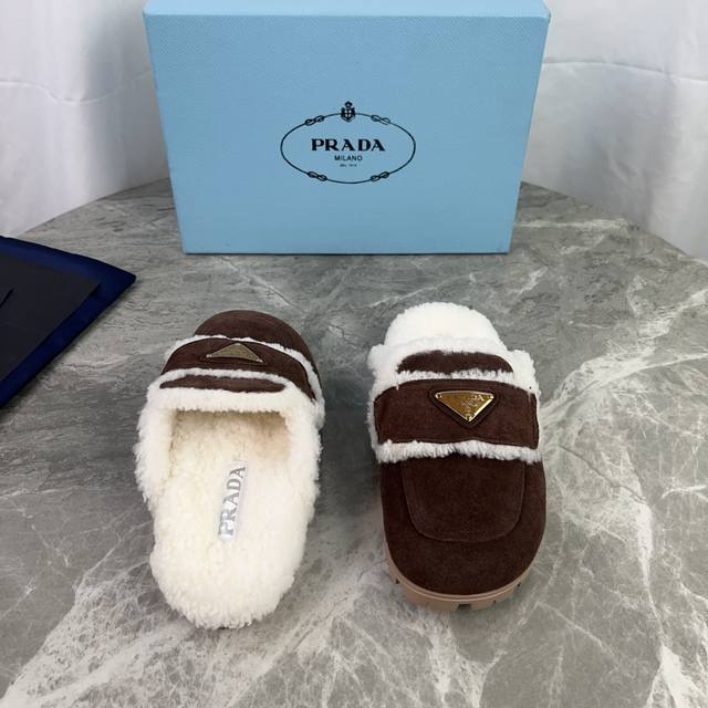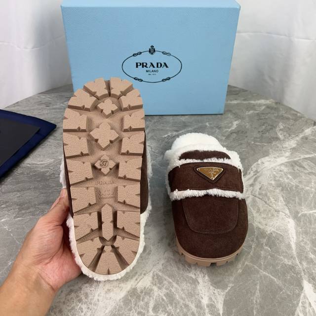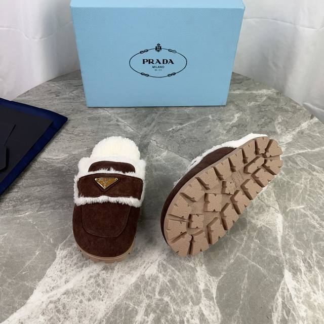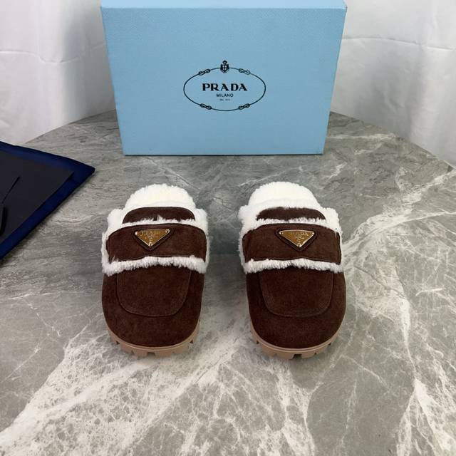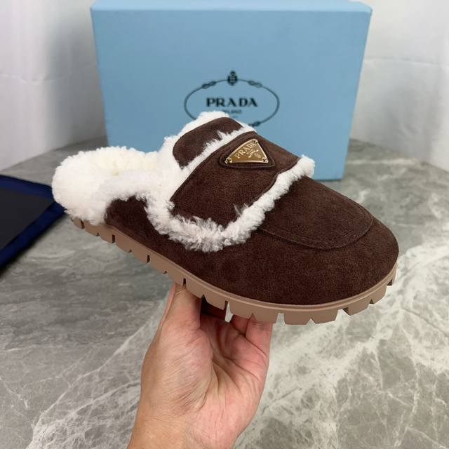 Latest P brand model. Outer: High-gloss cow suede; Lining: Original custom-made genuine wool; Pad: Genuine wool; Outsole: Non-slip, wear-resistant patterned rubber sole; Iconic triangle logo; Original packaging. Size: 35-41.